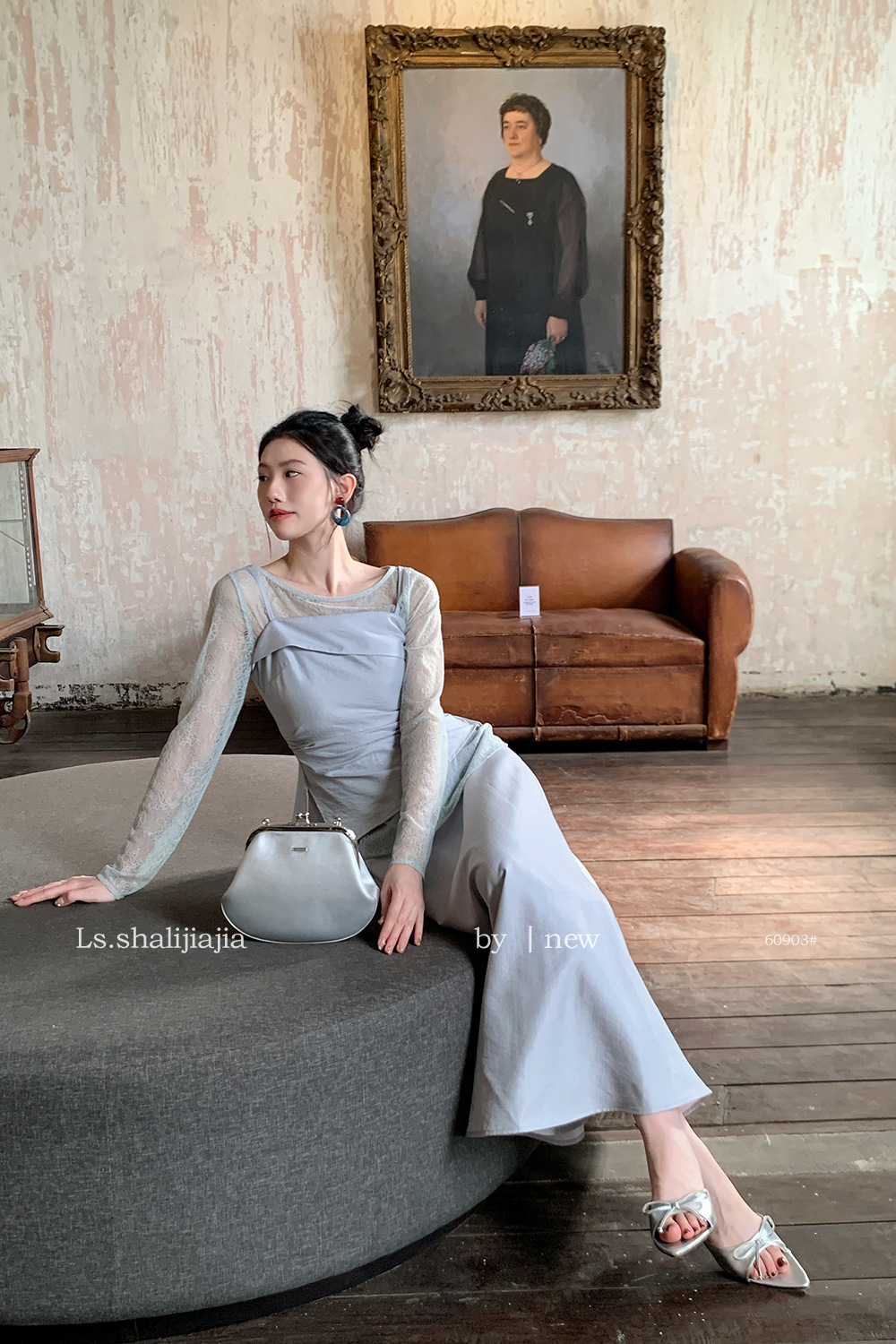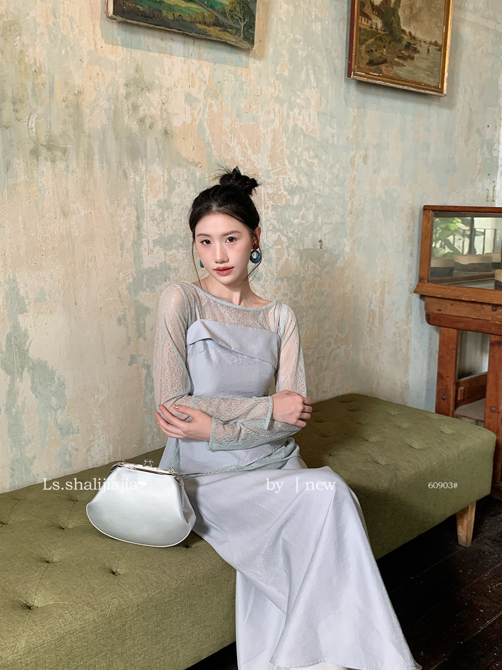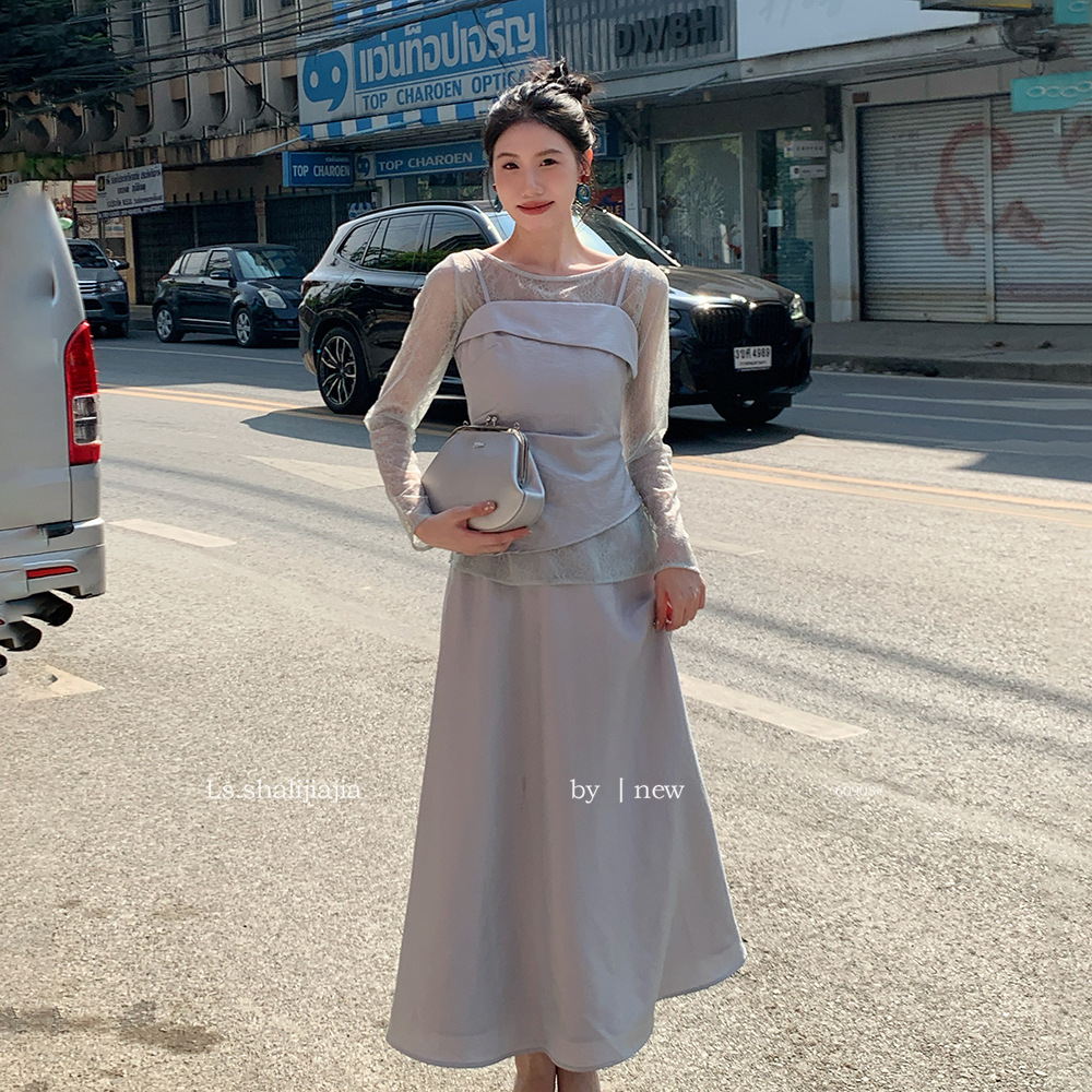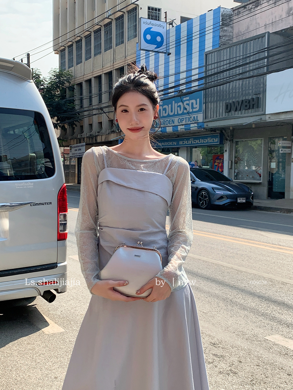 LS 25 년 새로운 순수 우아한 세트 여성 조커 기질 레이스 셔츠 스커트 3 피스 세트 60903스토어 가기