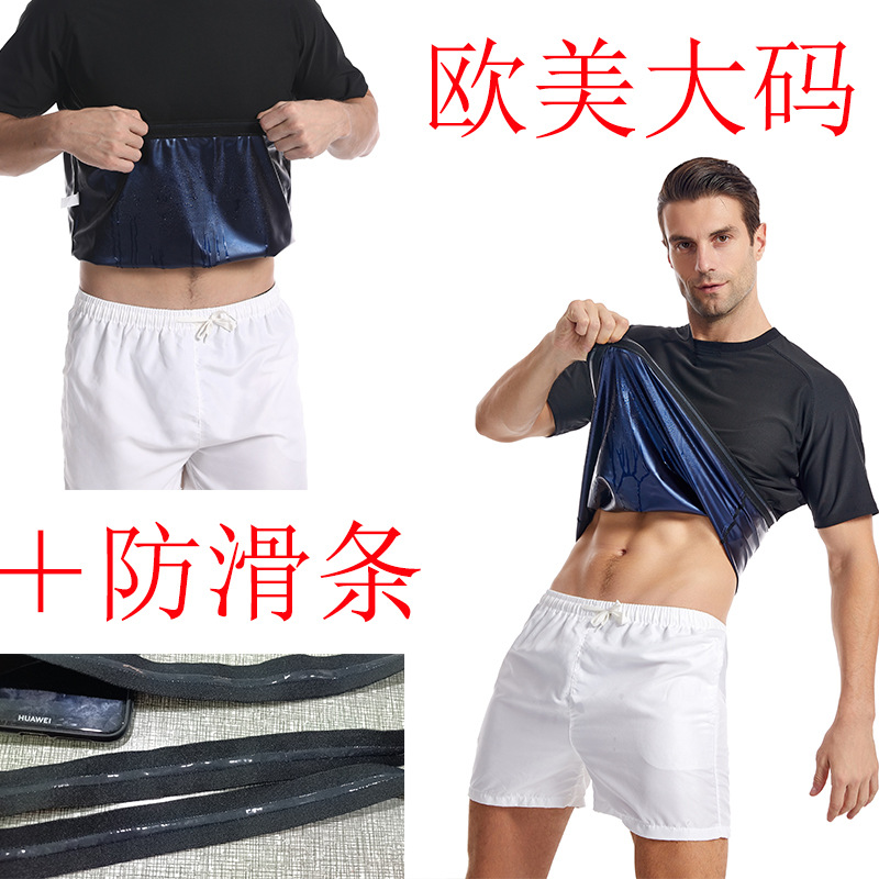 유럽과 미국의 플러스 사이즈 남자 스웨트 셔츠 스포츠 반팔 허리 피트니스 조끼 튜닉 복부 타이트 허리 스웨트 셔츠스토어 가기