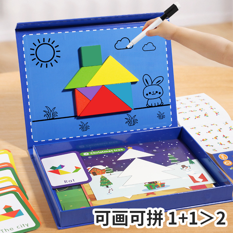 • 자석 칠교놀이 + T자 퍼즐(퍼즐 11개 + 퍼즐 96개 + 펜 1개 포함) 두께 0.8
