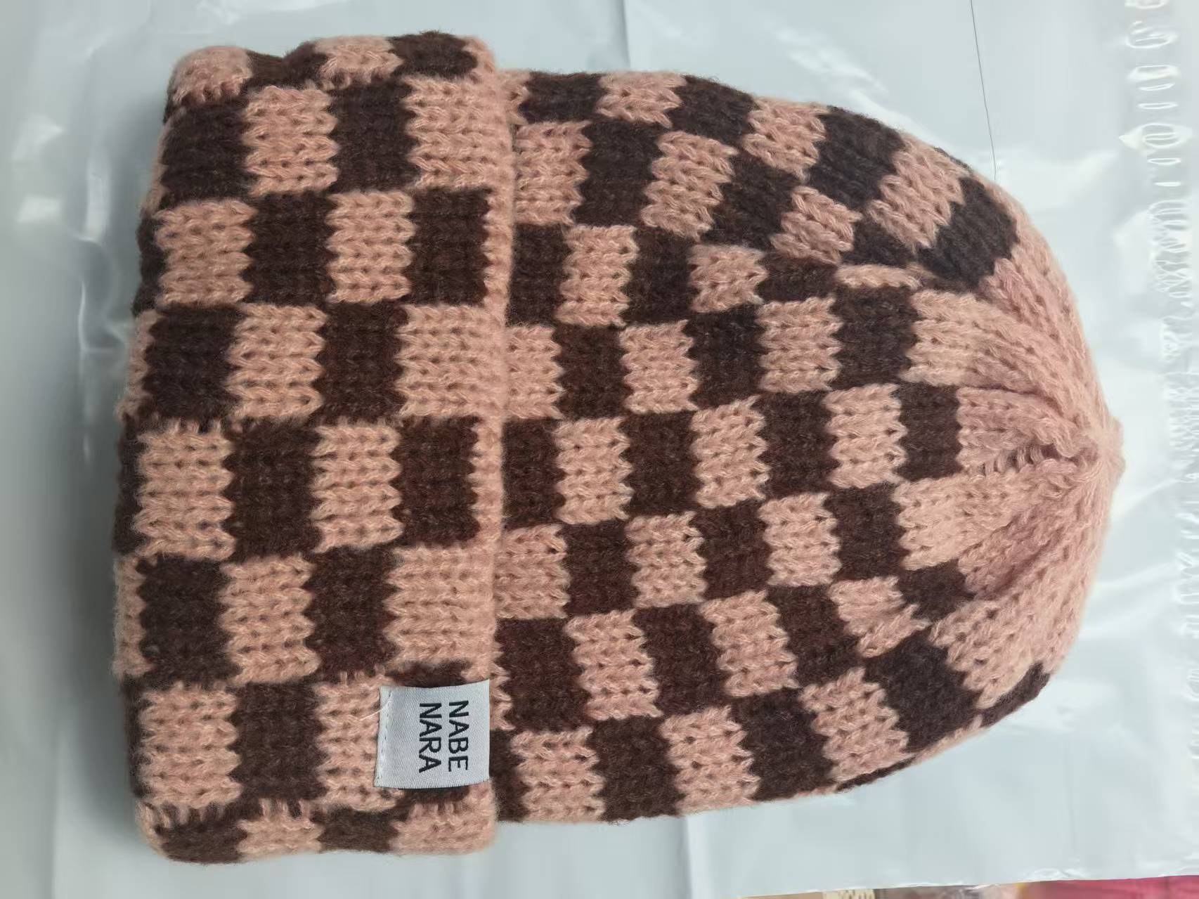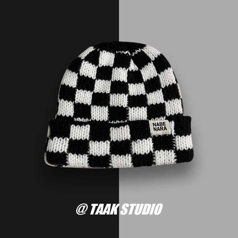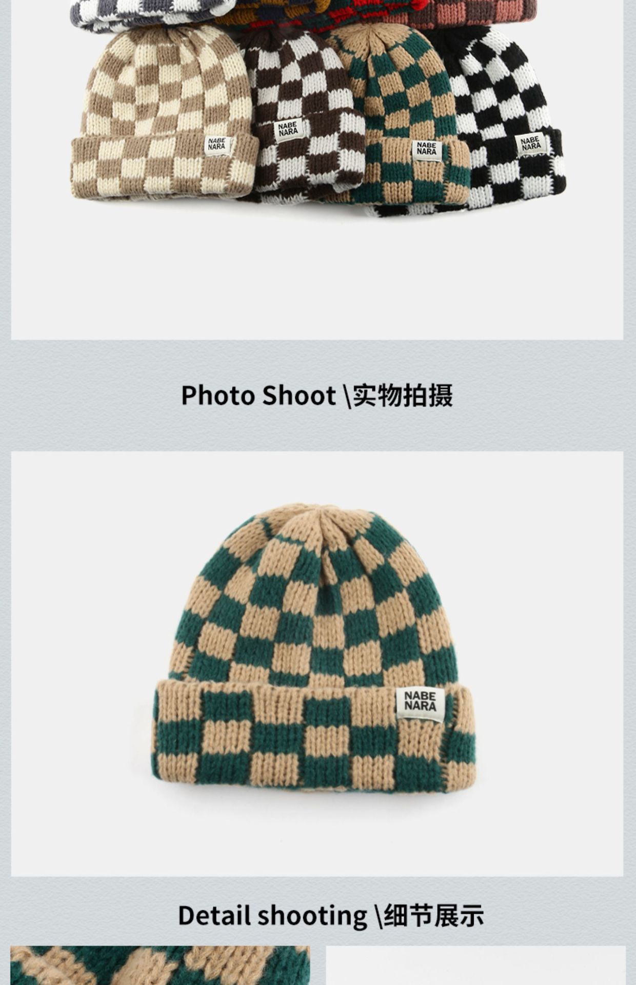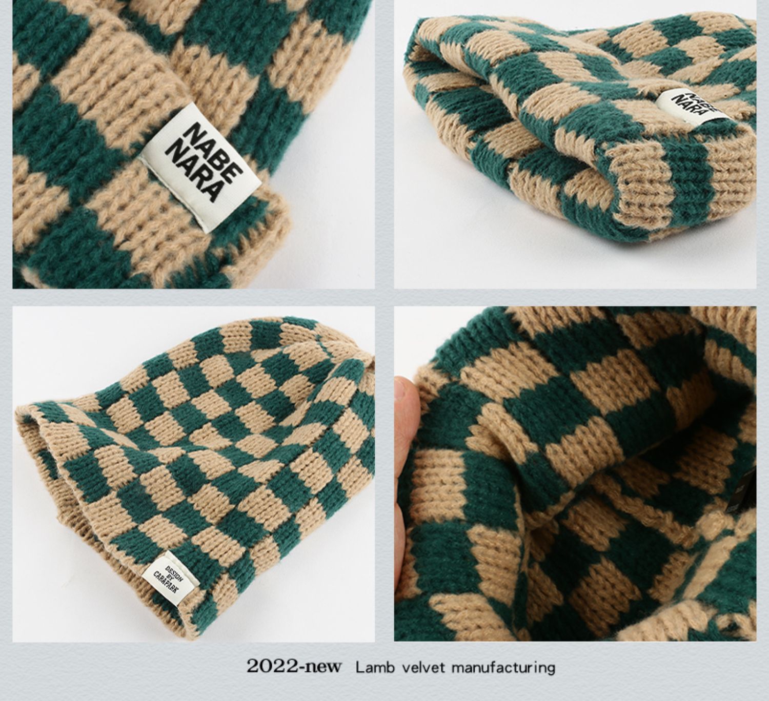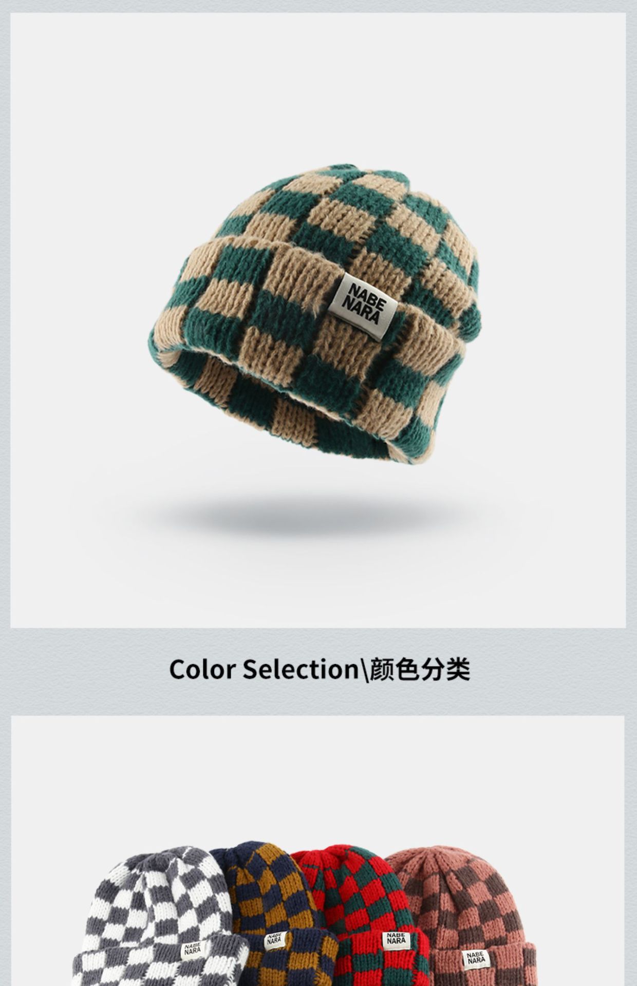체스 판 격자 니트 모자 여성 가을 겨울 한국 스타일 틈새 큰 머리 양모 모자 일본 스타일 쇼페이스 작은 크리스마스 모자스토어 가기