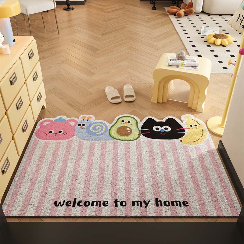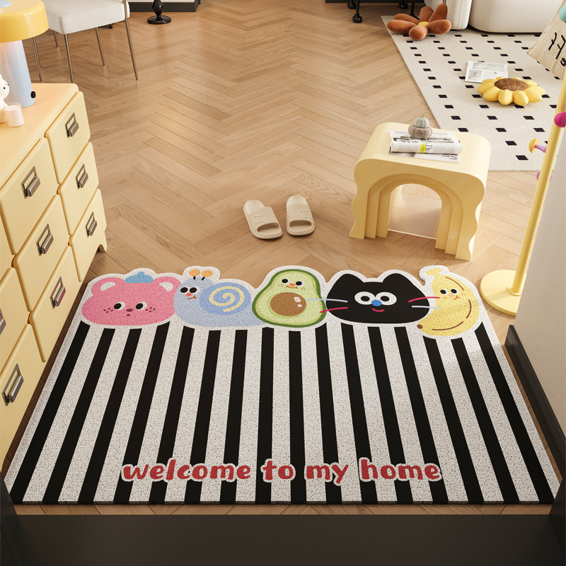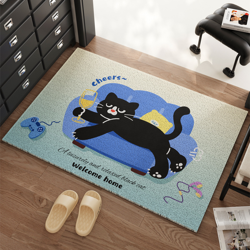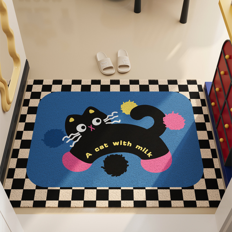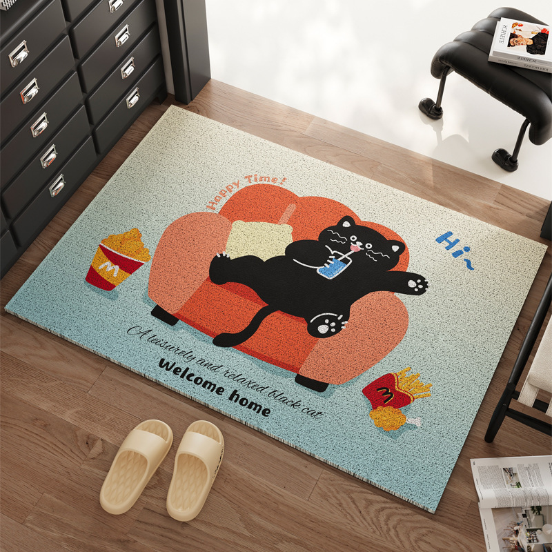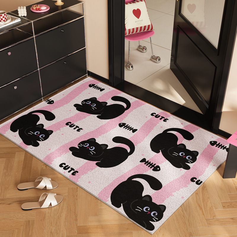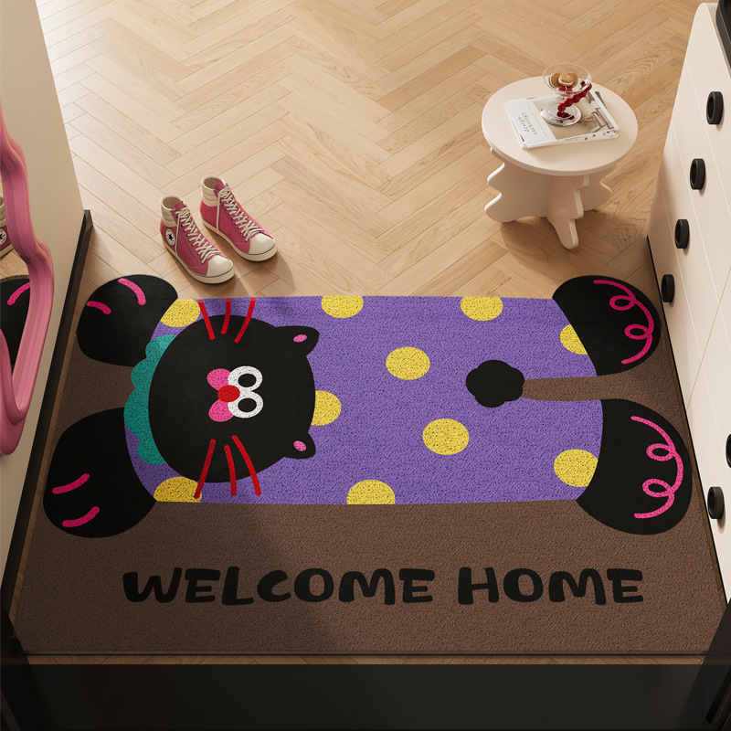 입구 바닥 매트 만화 고양이 미끄럼 방지 실크 루프 바닥 매트 가정용 입구 진흙 긁기 발 매트 절단 가능