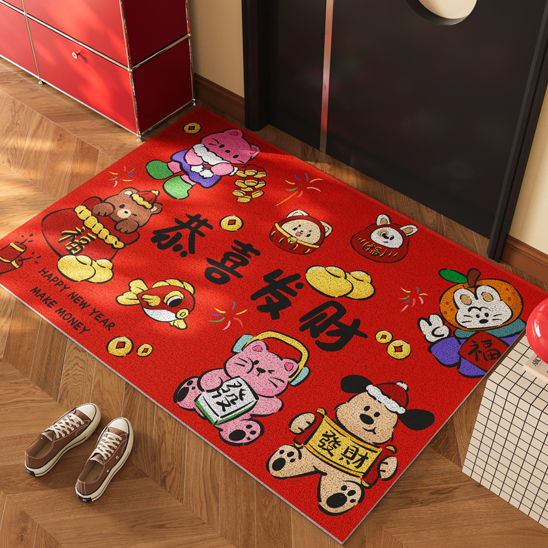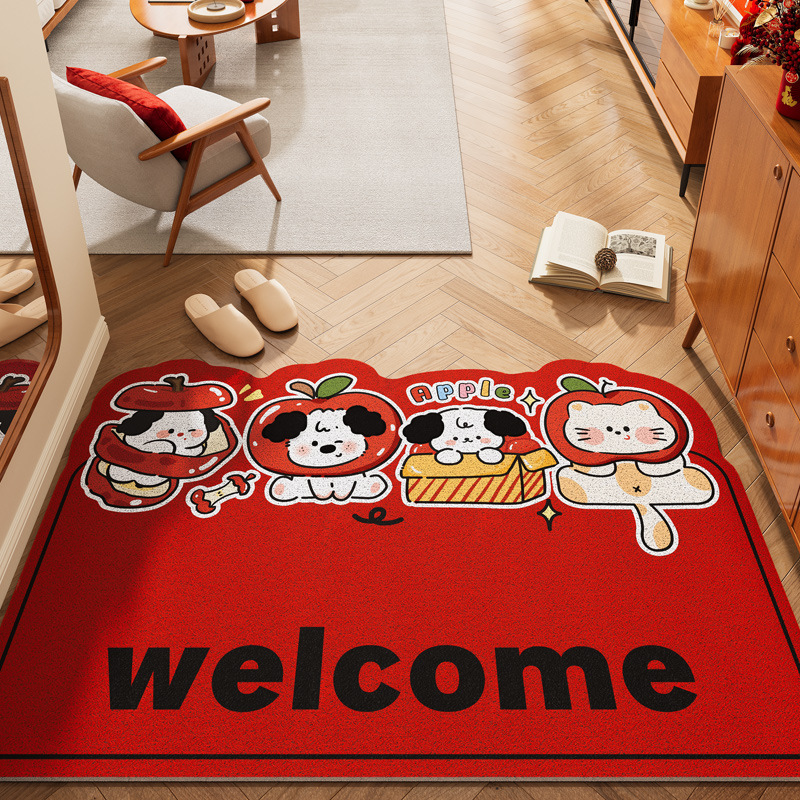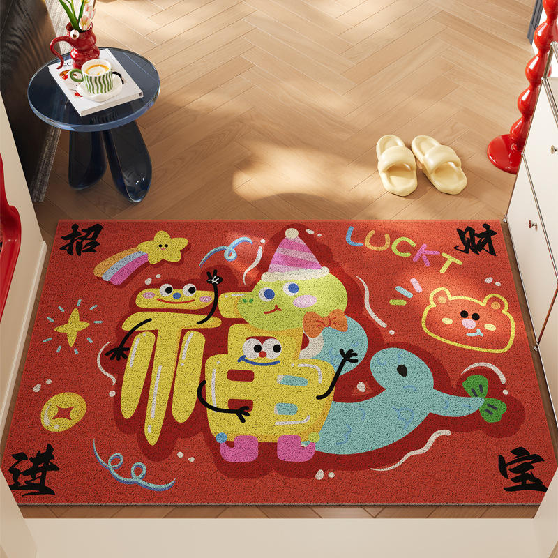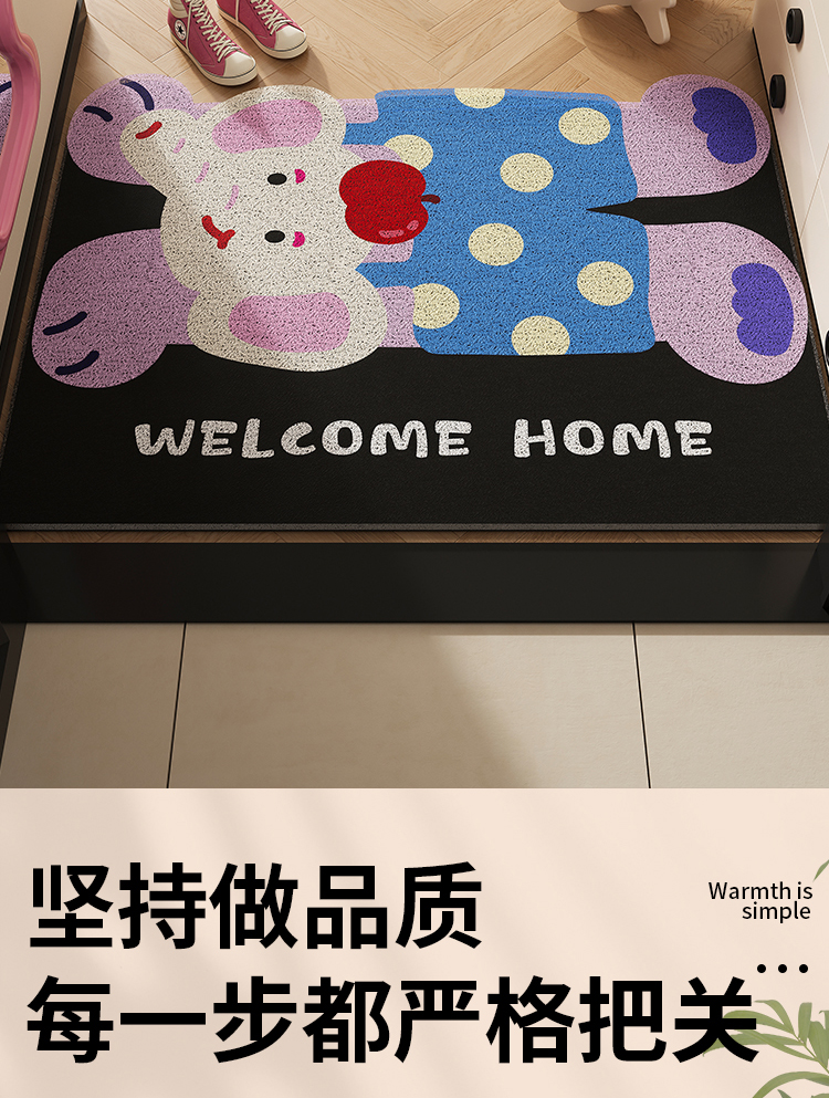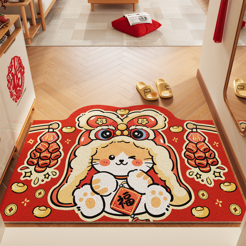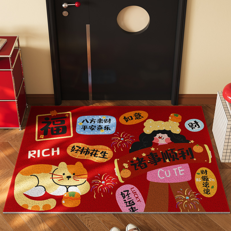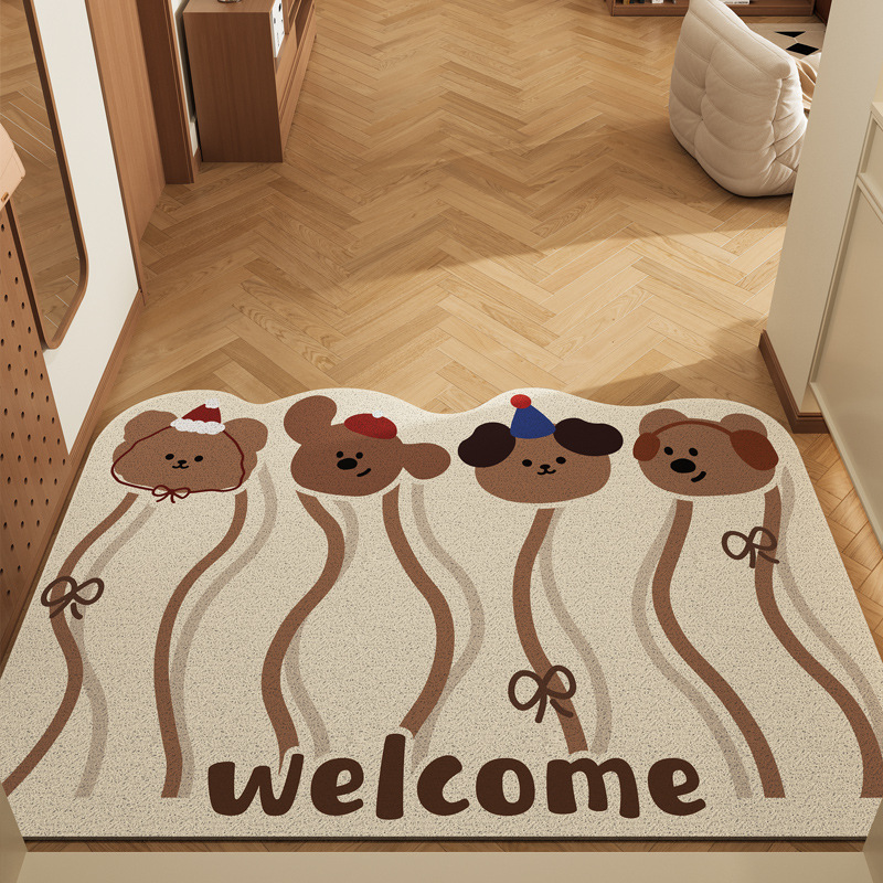 입구 바닥 매트 만화 고양이 미끄럼 방지 실크 루프 바닥 매트 가정용 입구 진흙 긁기 발 매트 절단 가능
