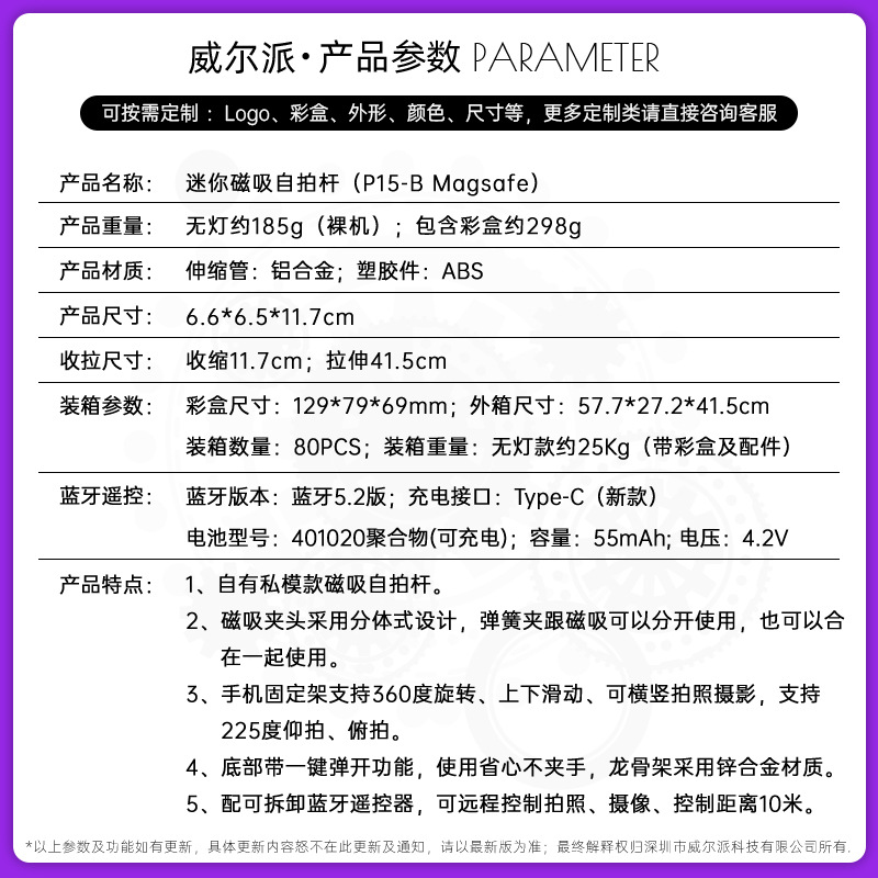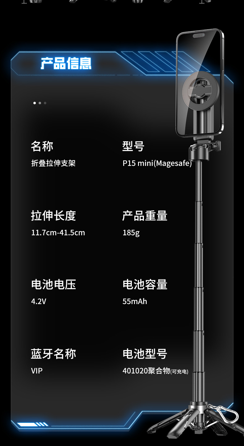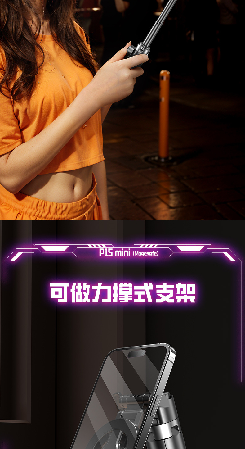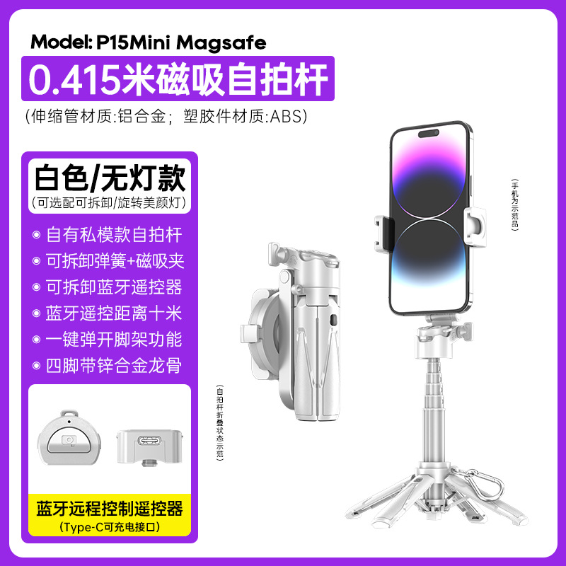 P15Mini-B 자기 셀프 타이머 스틱 여행 휴대용 미니 슈팅 아티팩트 휴대 전화 카메라 보조 자기 셀프 타이머 스틱