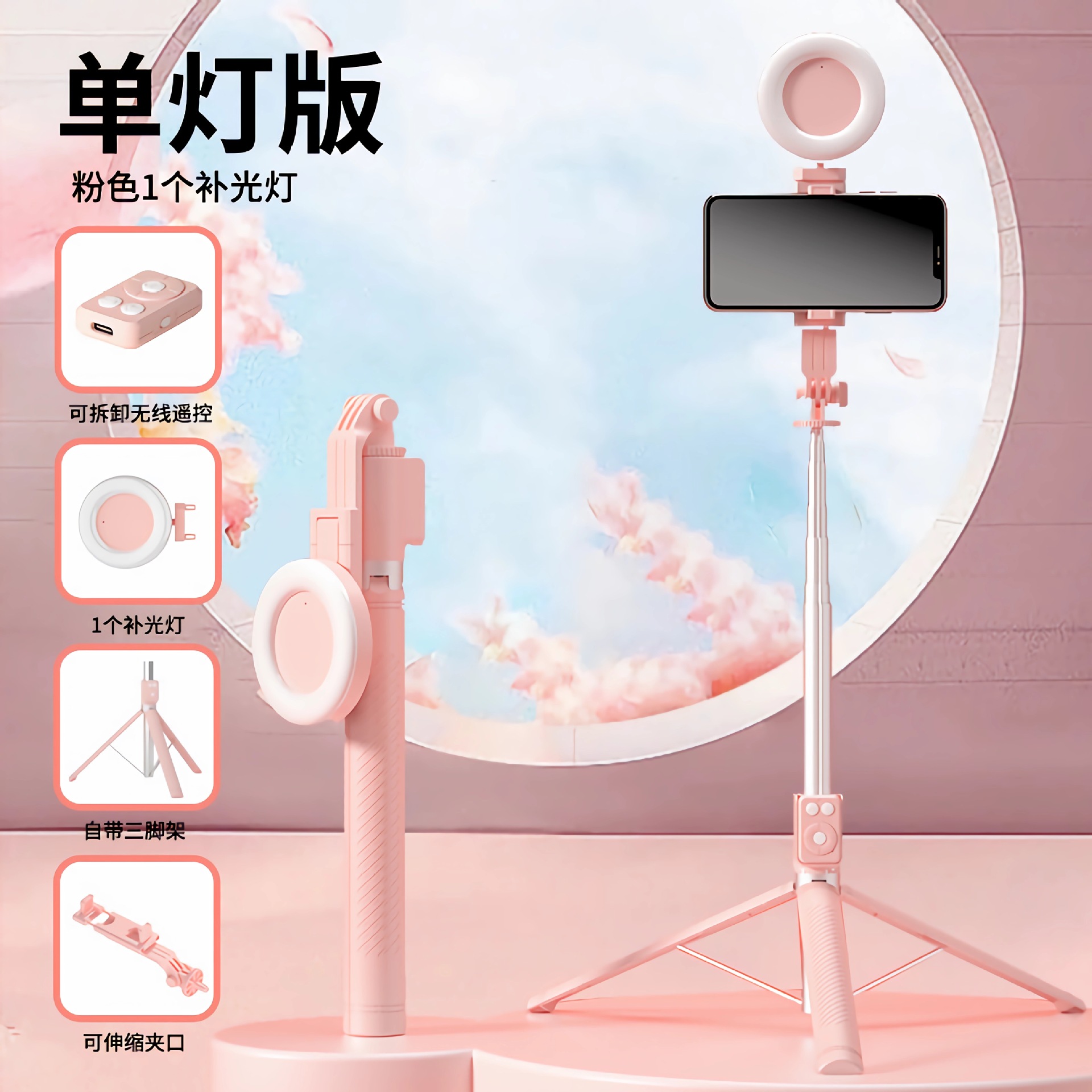 • A14 핑크 [ 1.8m 알루미늄 합금 셀카봉 + 충전 기능 Douyin 블루투스 리모컨 + 듀얼 헤드라이트 ]