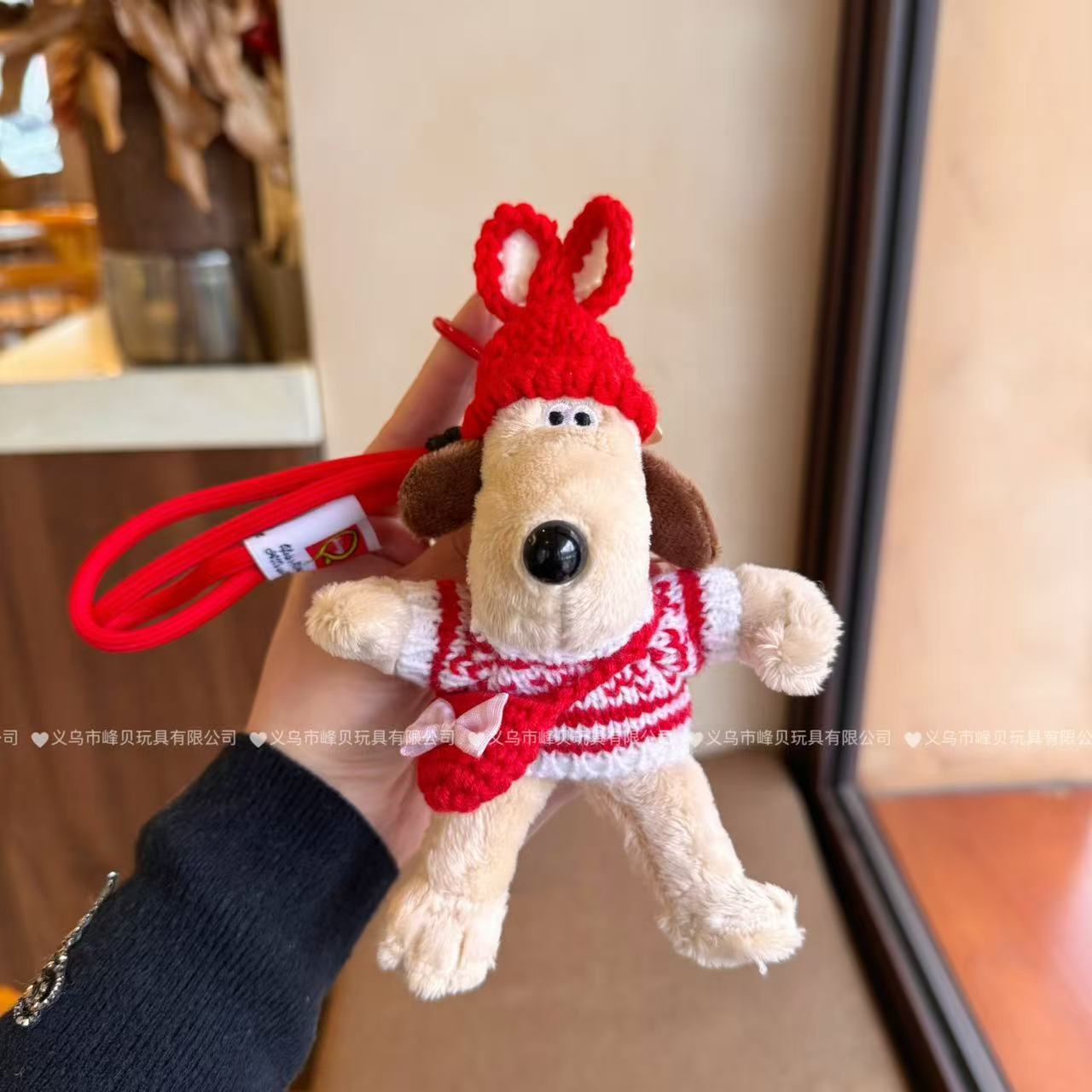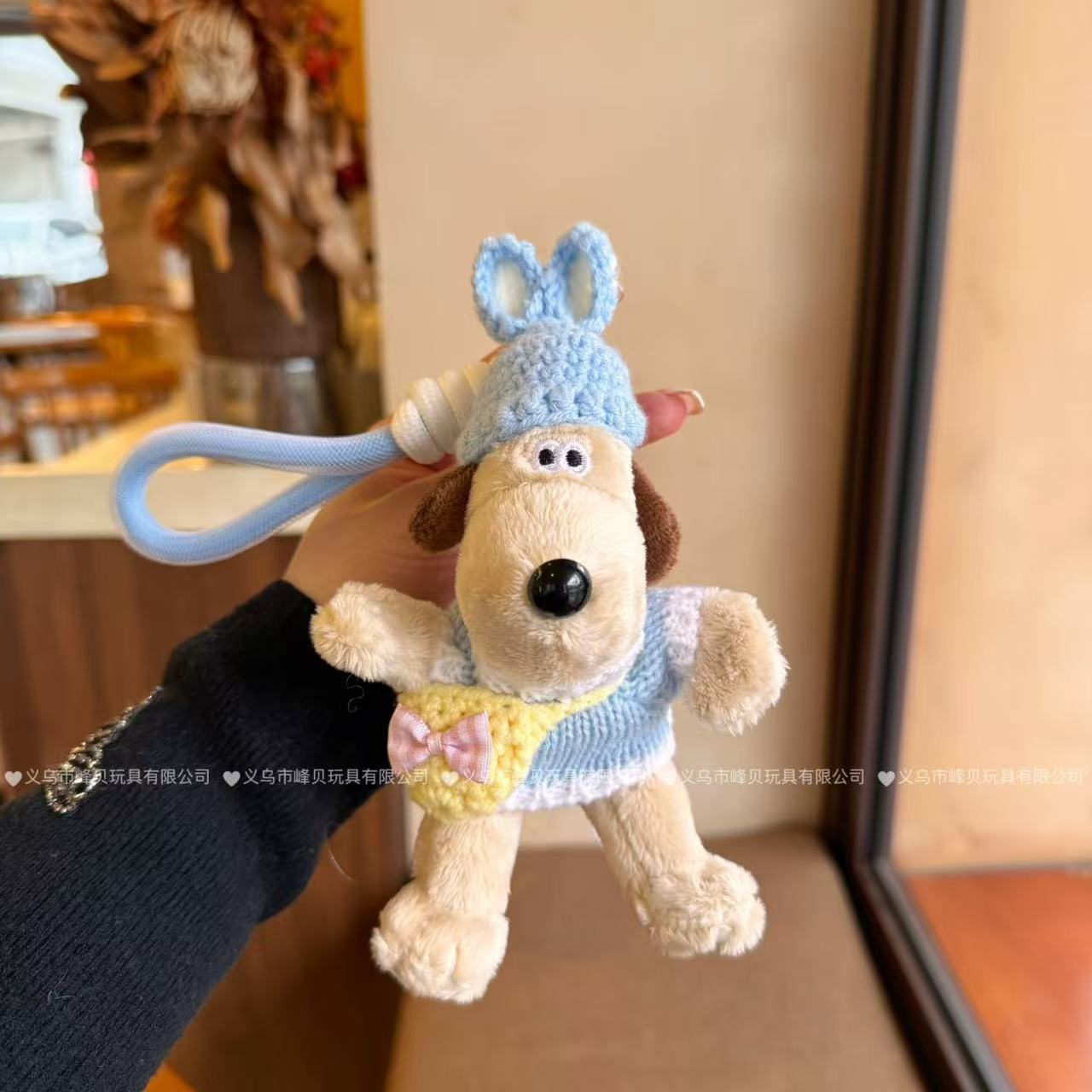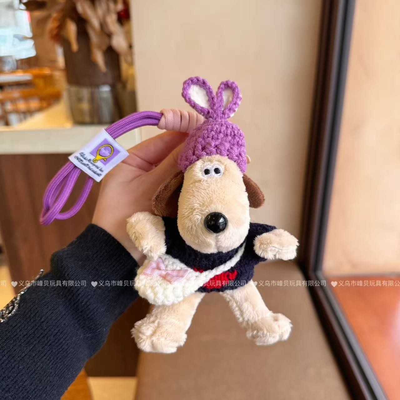 토끼 귀 니트 모자 핸드독 13cm 휴대 전화 백 클립 크로스 바디 체인 플러시 인형 펜던트 장난감스토어 가기