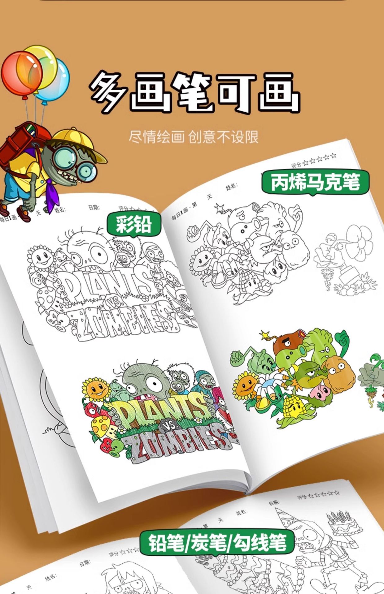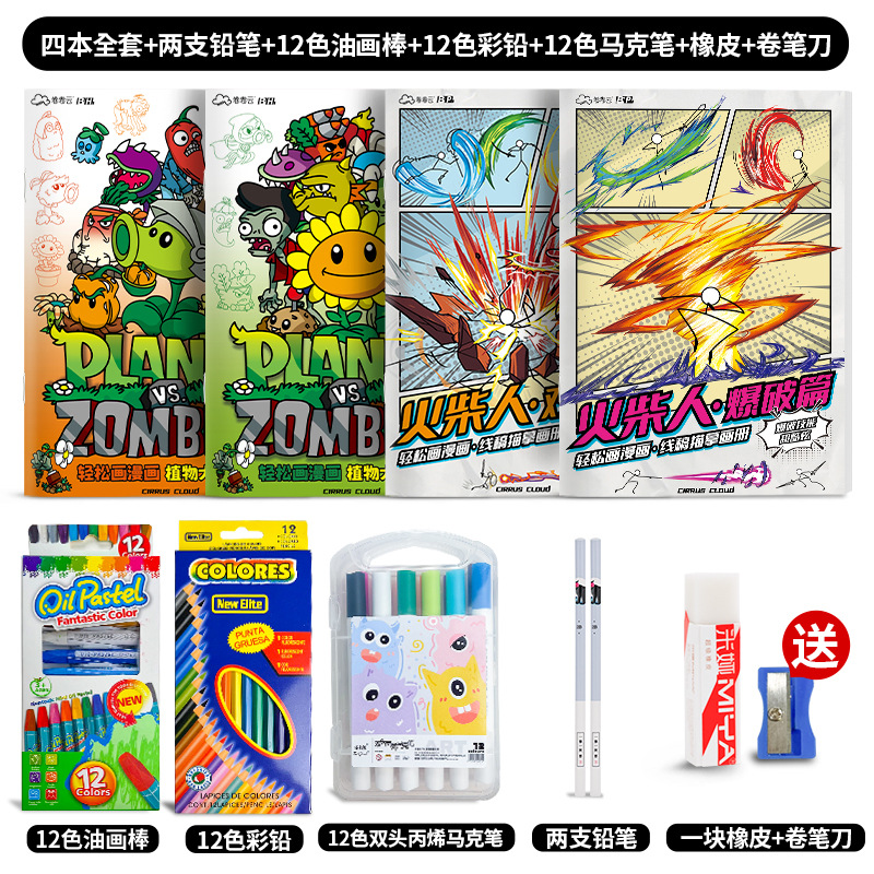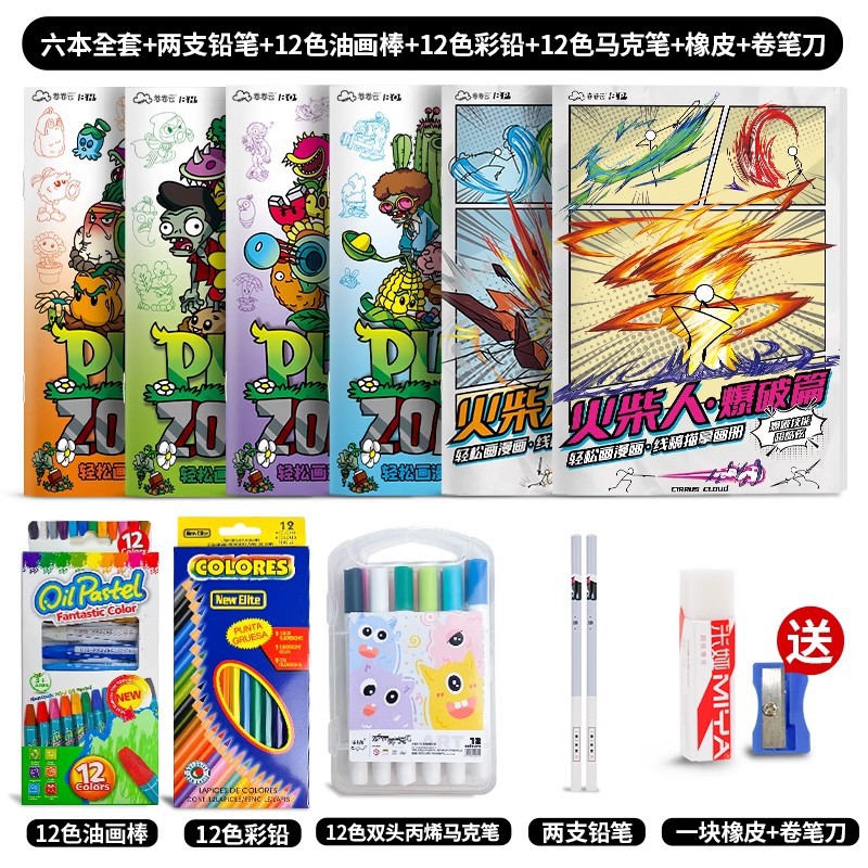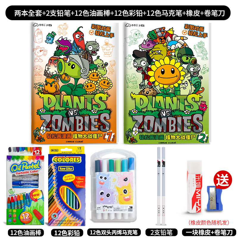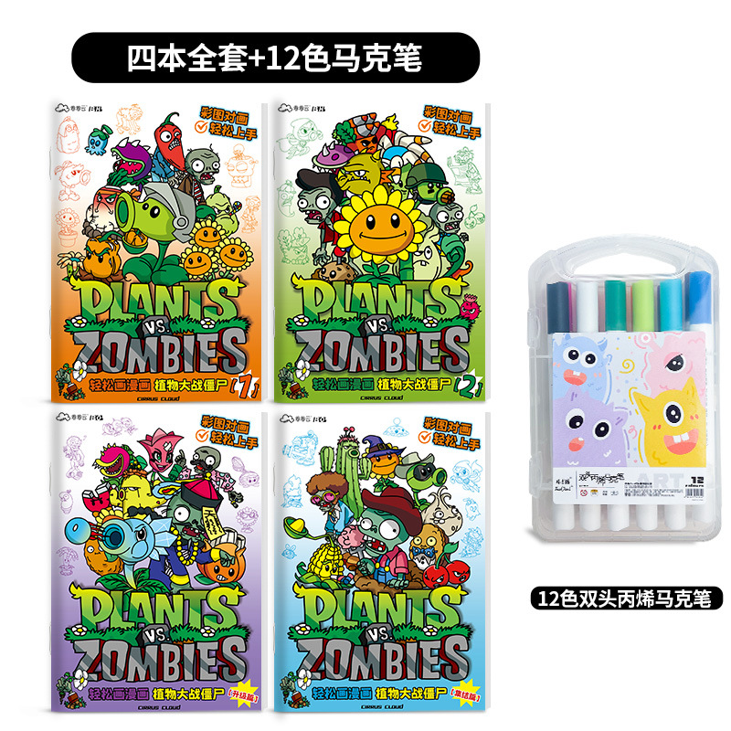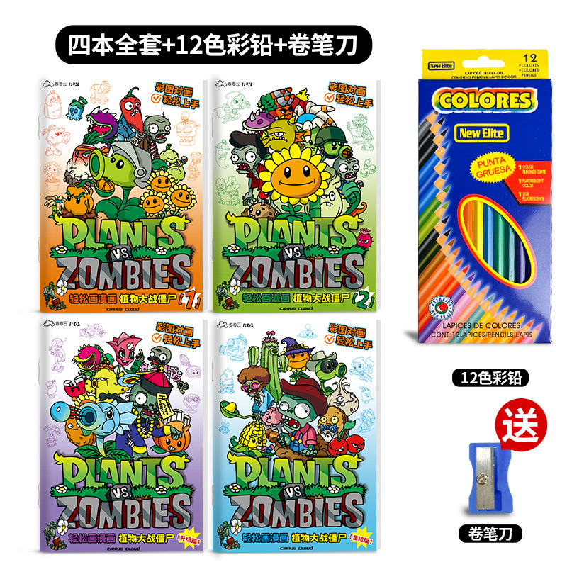 식물 대 좀비 게임 그림 책 3-6-12 세 어린이 그림 컬러 페인팅 책 슈퍼 파이어 보이 만화스토어 가기