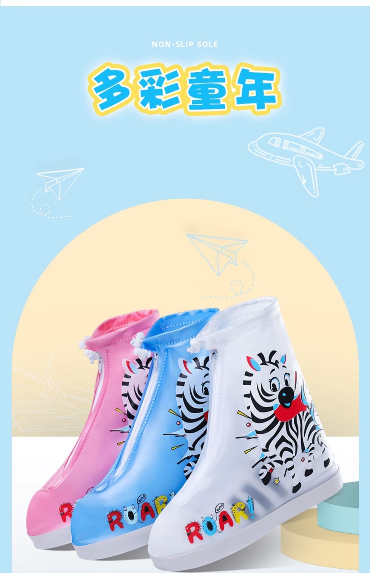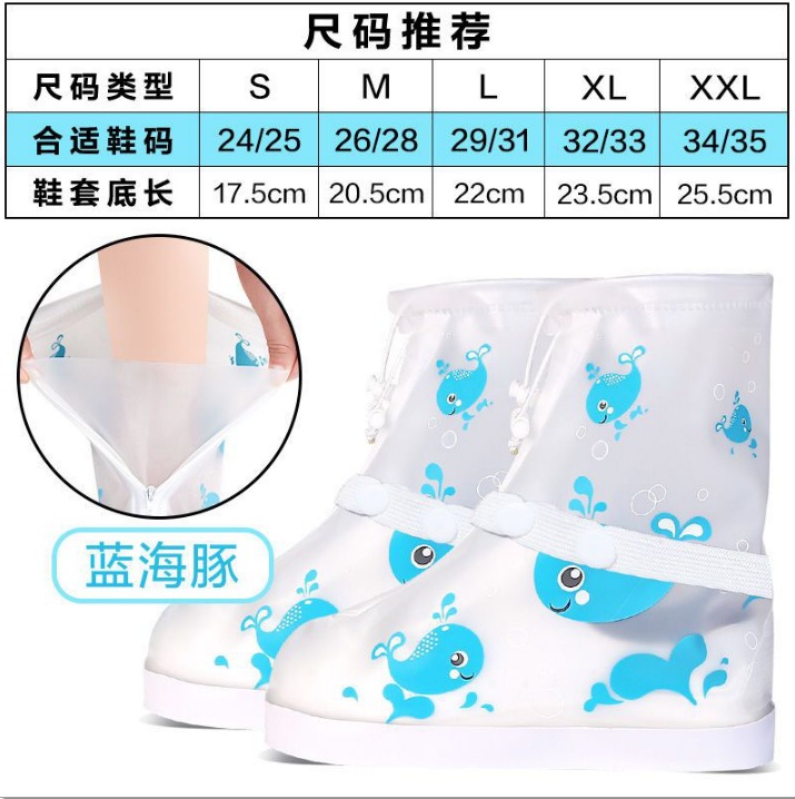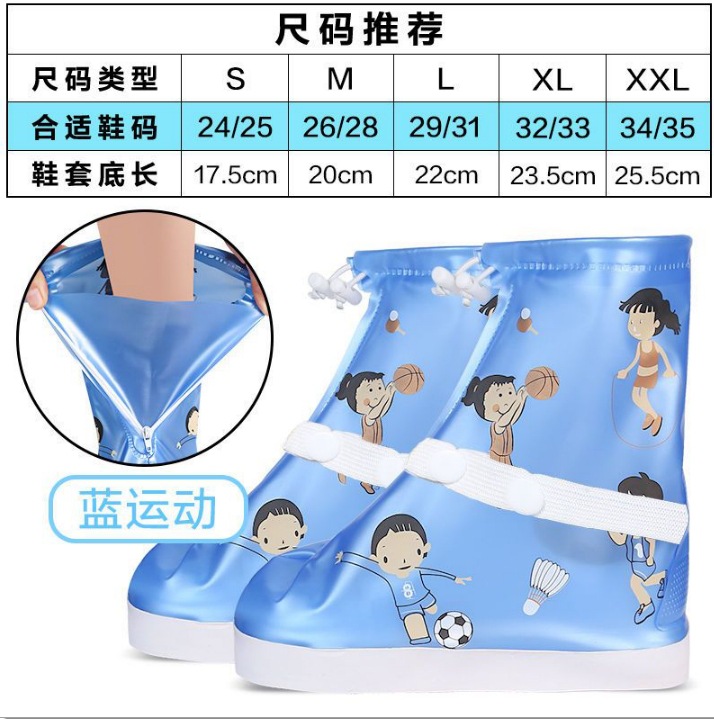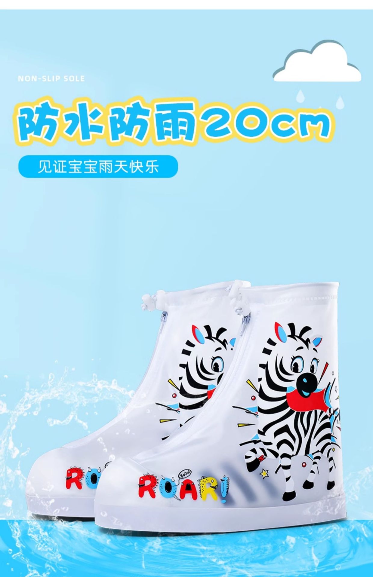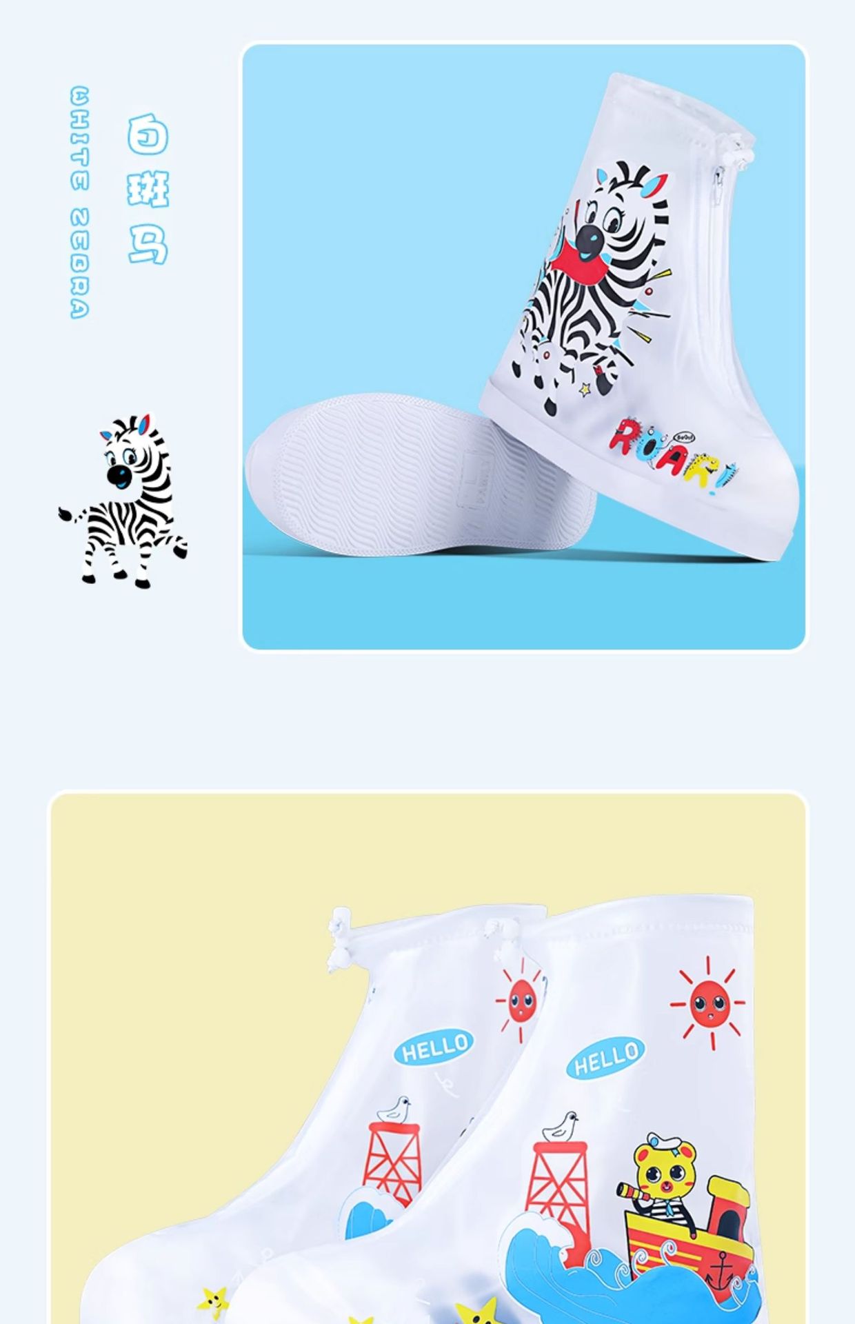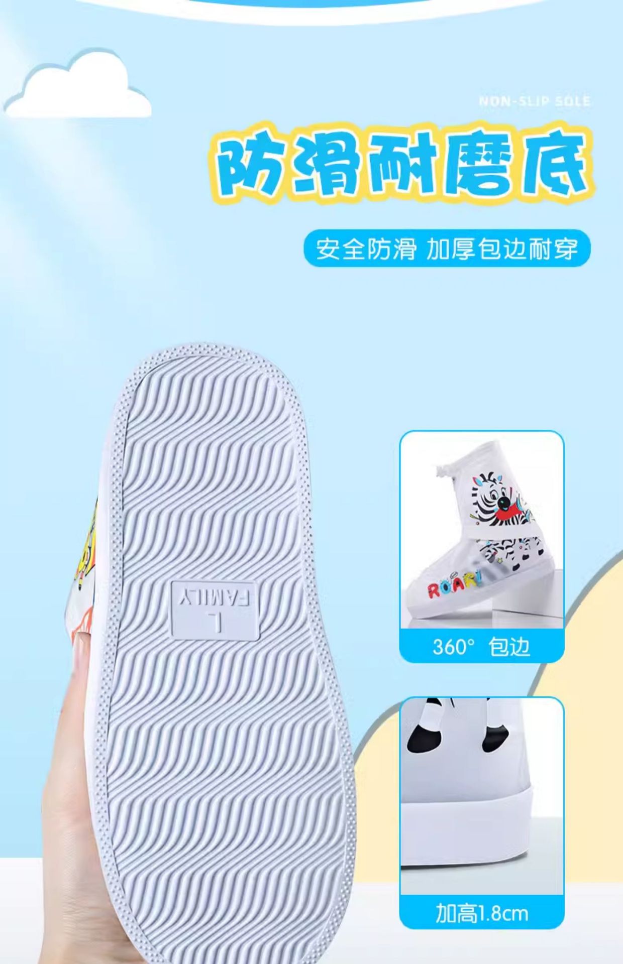 어린이용 레인슈즈 커버, 중간 길이, 방수, 미끄럼 방지, 야외용 레인슈즈 커버, 물밑창, 어린이용 만화 패턴스토어 가기