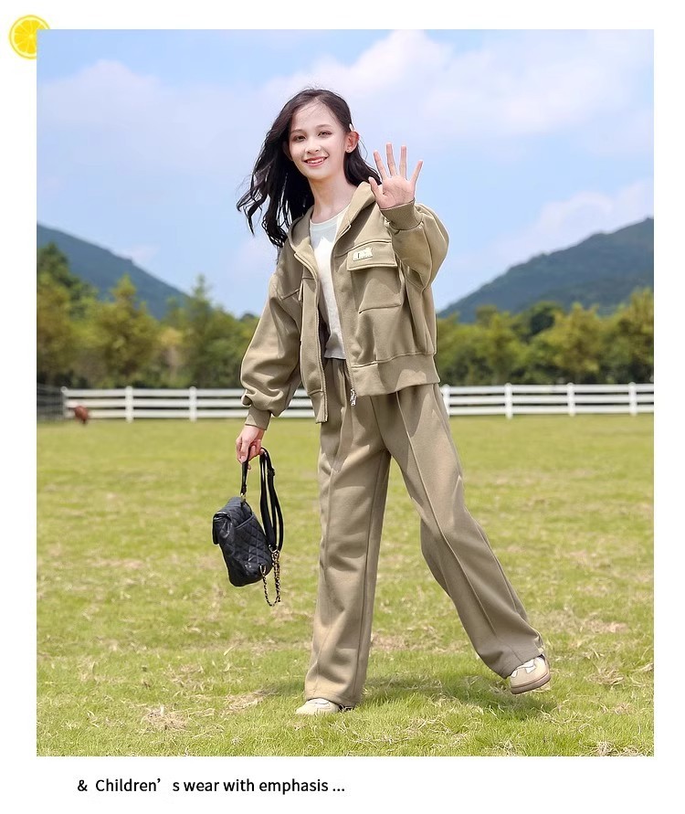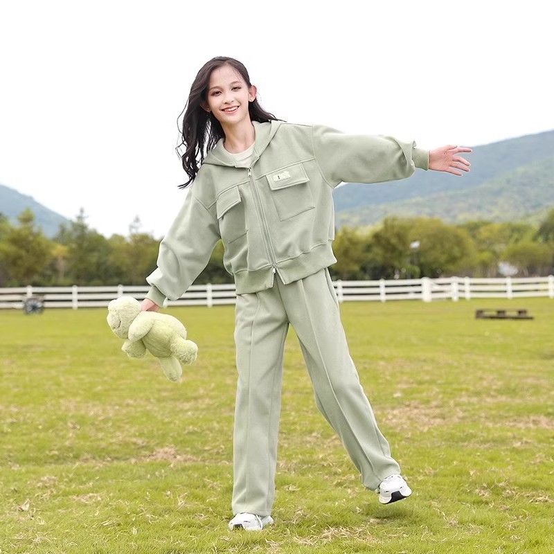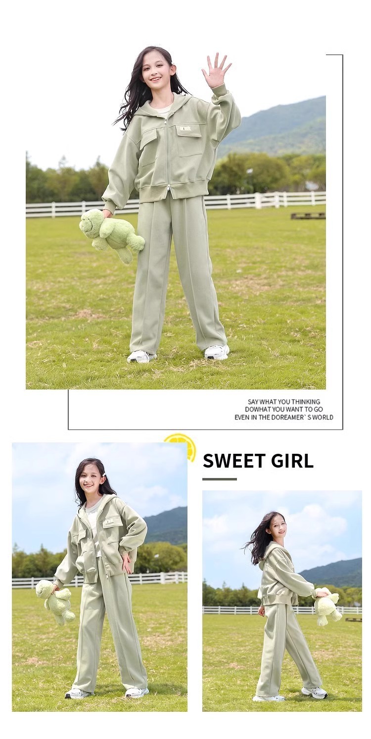 소녀의 봄과 가을 세트 2025 새로운 어린이 후드 재킷 스트레이트 루즈 캐주얼 바지 편안한 투피스 트렌디스토어 가기