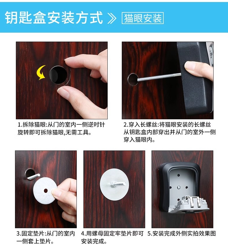 장식 키 암호 상자 건설 현장 가정용 고양이의 눈 문 비밀번호 잠금 펀치 무료 홈스테이 금속 도난 방지 키 박스스토어 가기
