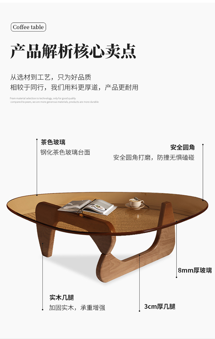 • 브라운 유리 + 호두 원목 다리 (소형)