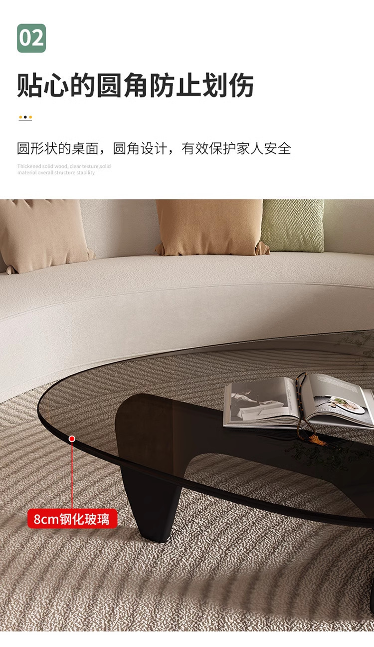 • 그레이 유리 + 우아한 블랙 원목 다리 (소형)