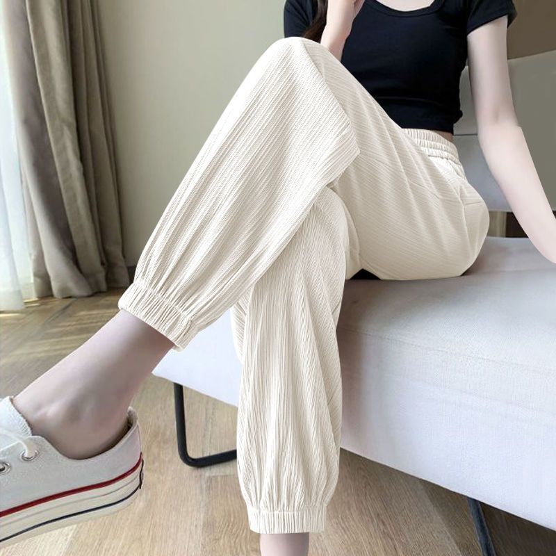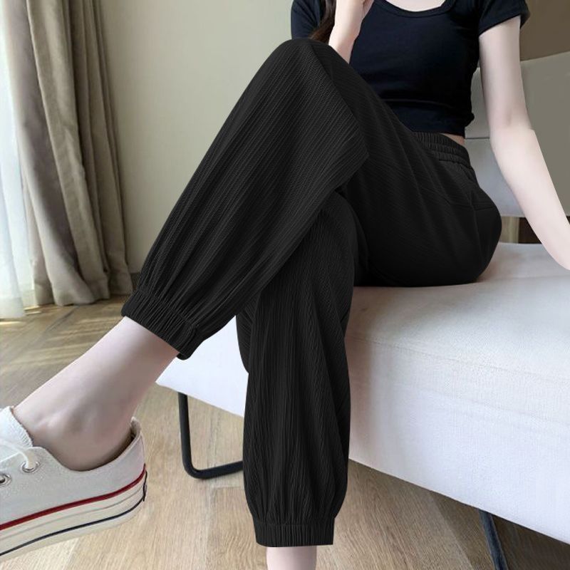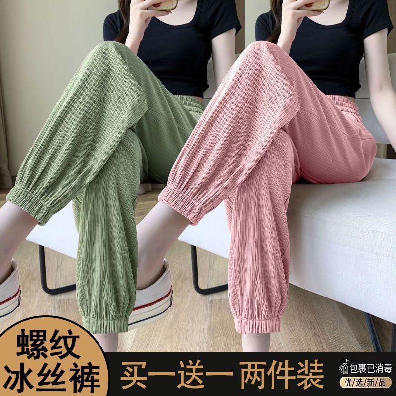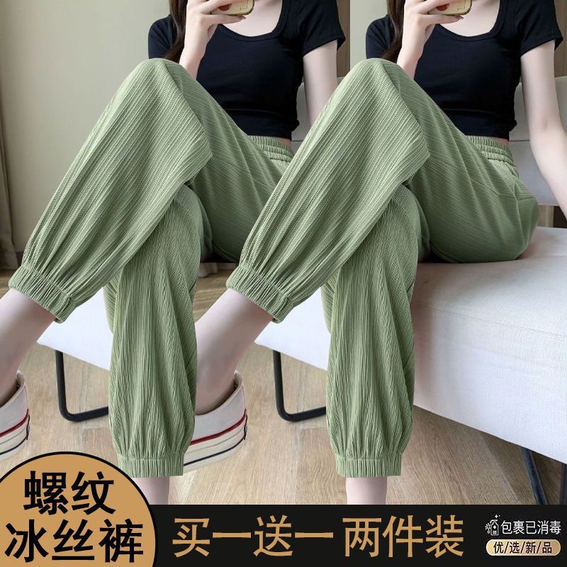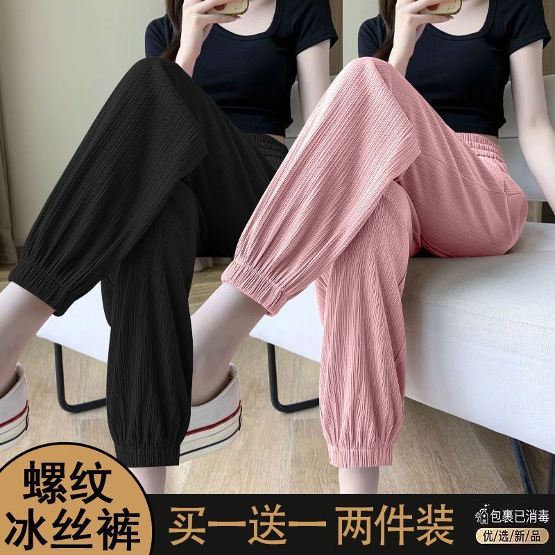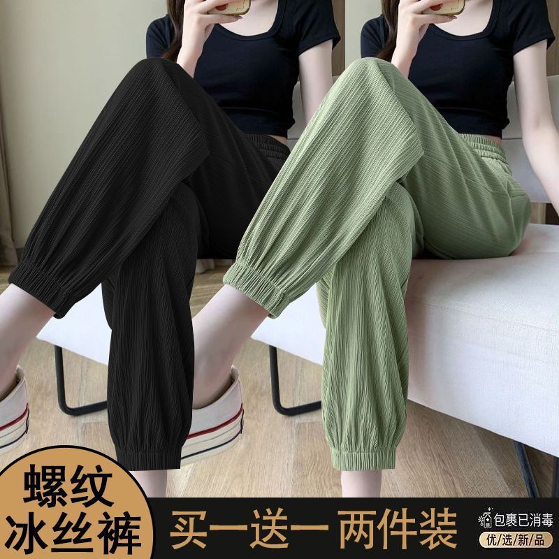 싱글/두 조각 아이스 실크 스포츠 바지 여자 여름 느슨한 슬리밍 작은 바지 유행 올 매치 블루머스토어 가기