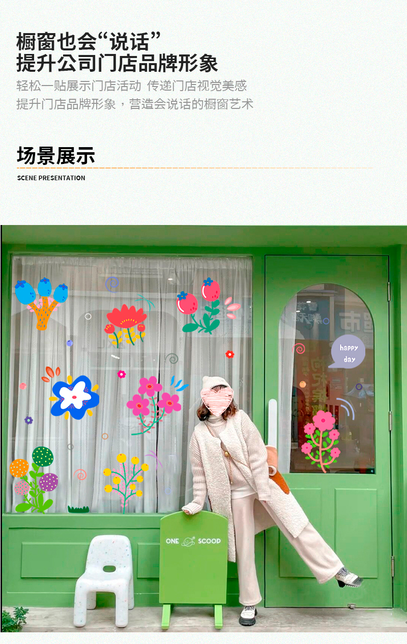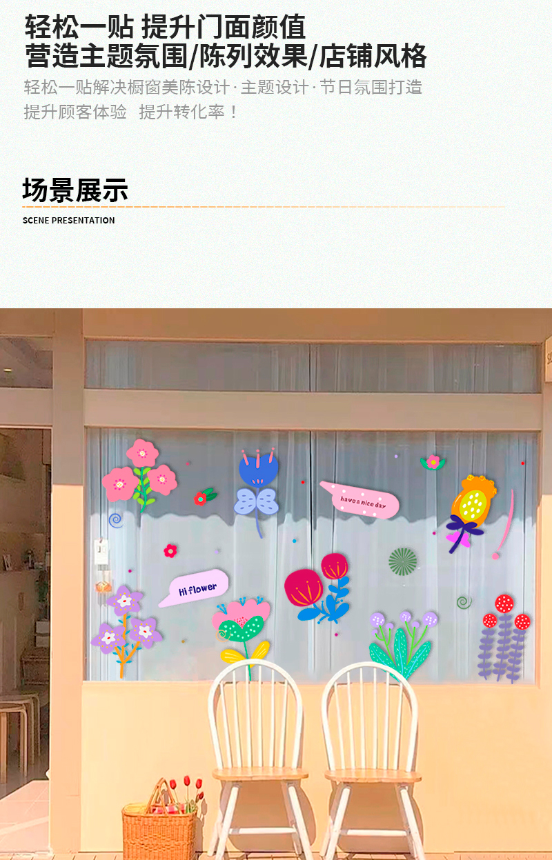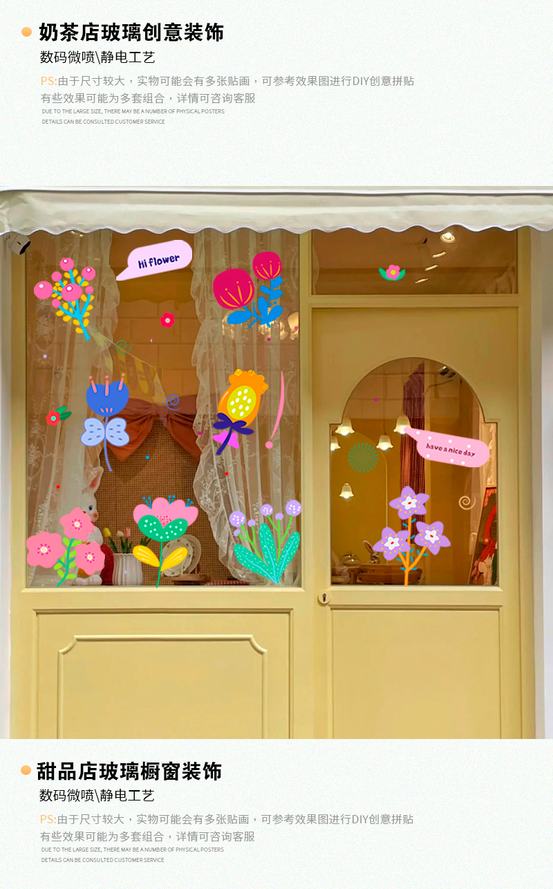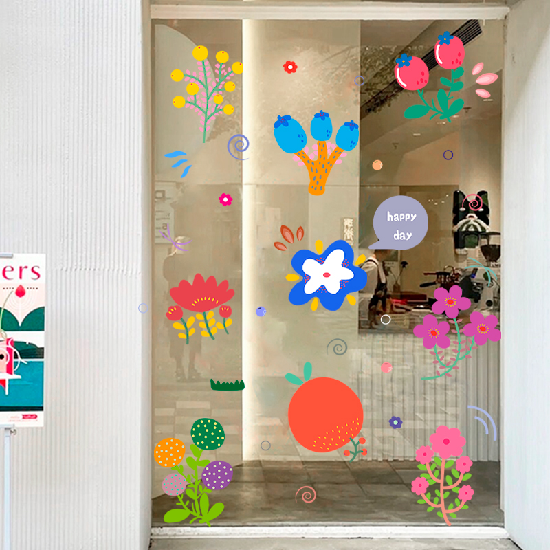 인 스타일 손으로 그린 꽃 스티커 의류 매장 밀크 티 레스토랑 꽃 가게 유리 창 유명 인사 가게 창조적 인 장식