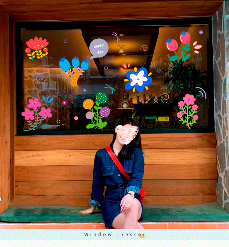 인 스타일 손으로 그린 꽃 스티커 의류 매장 밀크 티 레스토랑 꽃 가게 유리 창 유명 인사 가게 창조적 인 장식스토어 가기