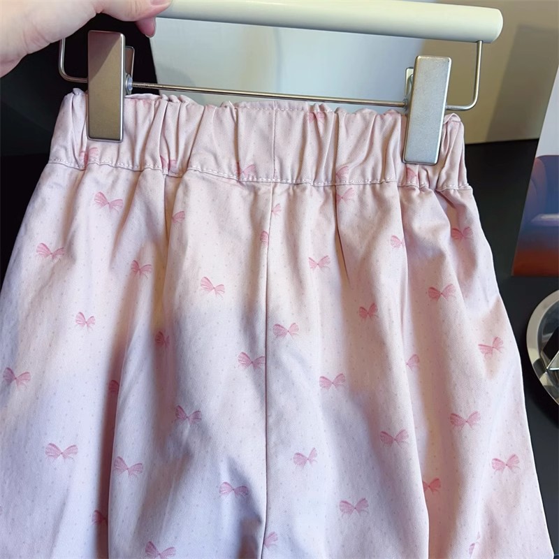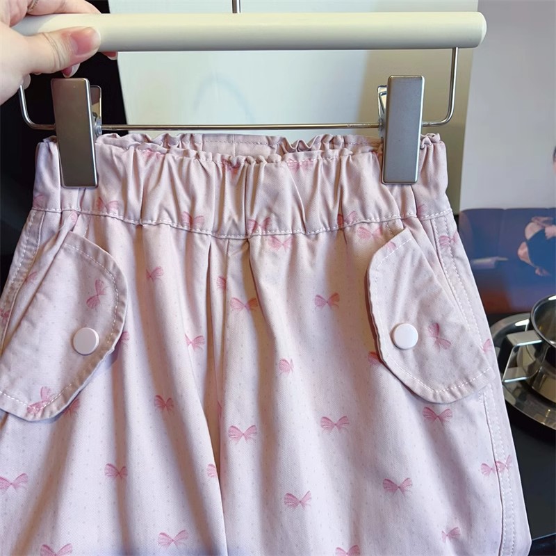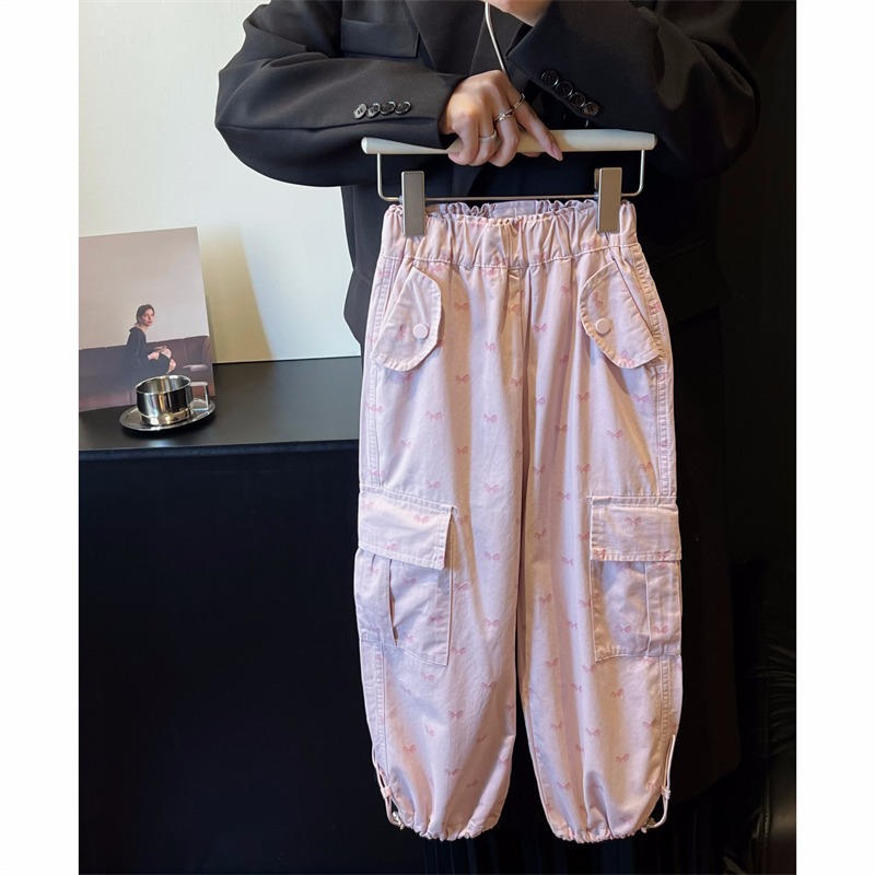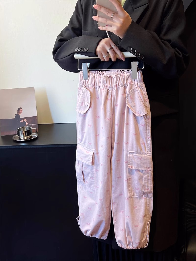 소녀의 봄과 가을 쿠션 바지 2025 새로운 어린이 가을 바지 큰 어린이 핑크 활 넓은 다리 바지 한국 스타일스토어 가기