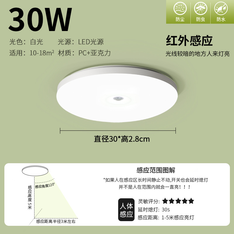 • [적외선 인체 센서] 천장 조명 30W 백색광