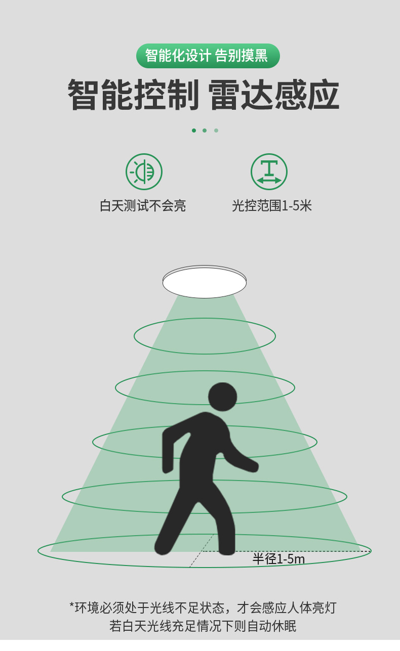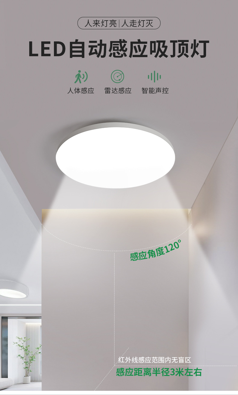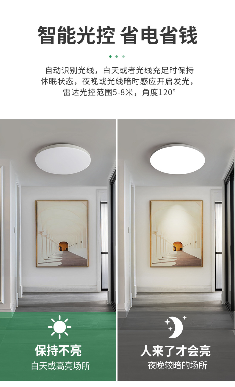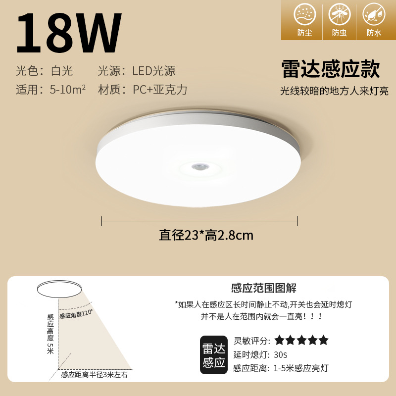 레이더 센서 천장등 인체 감지등 적외선 계단 통로 LED등 현관문 눈 보호등