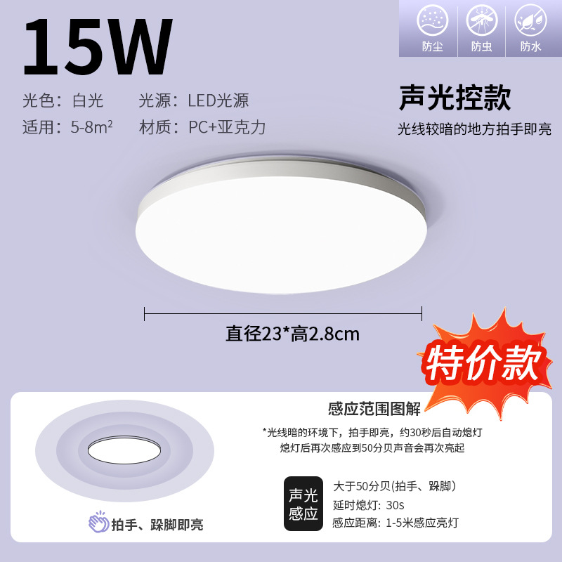 • [음향 및 조명 제어 센서] 천장 조명 30W 백색광