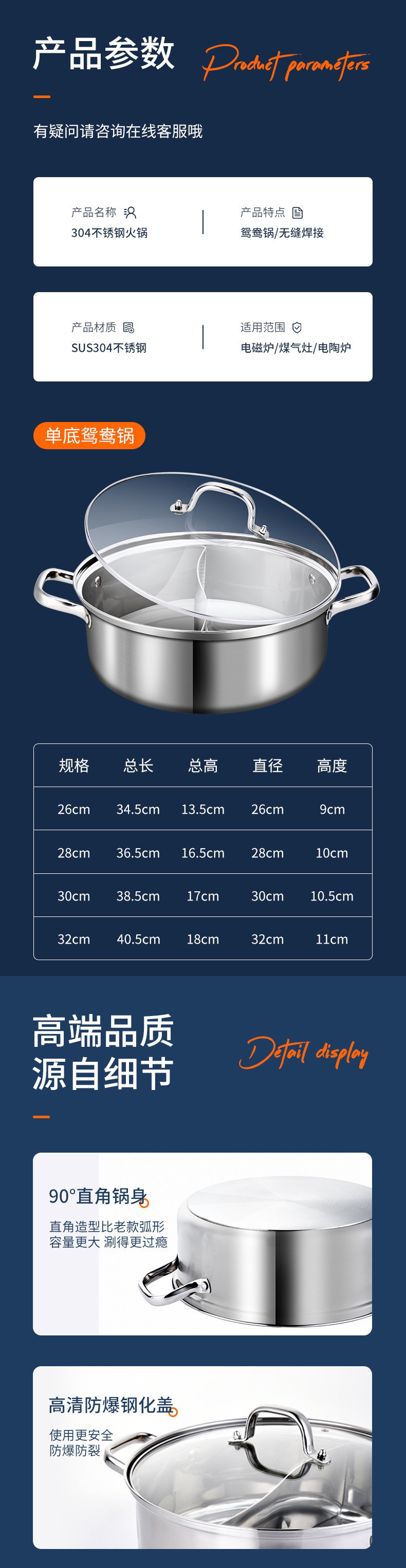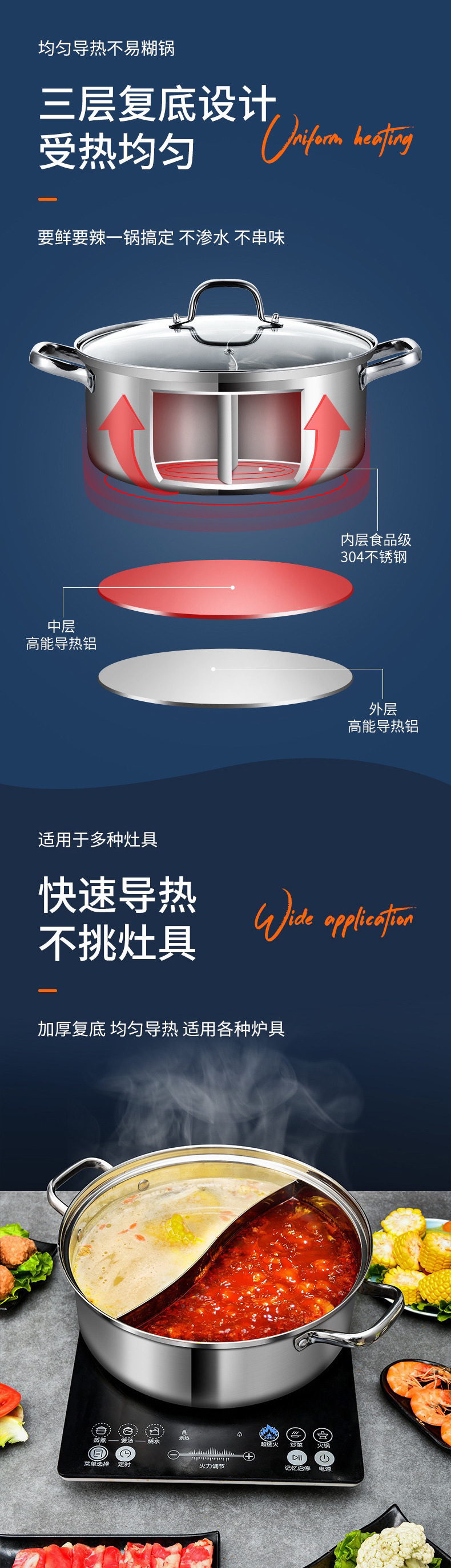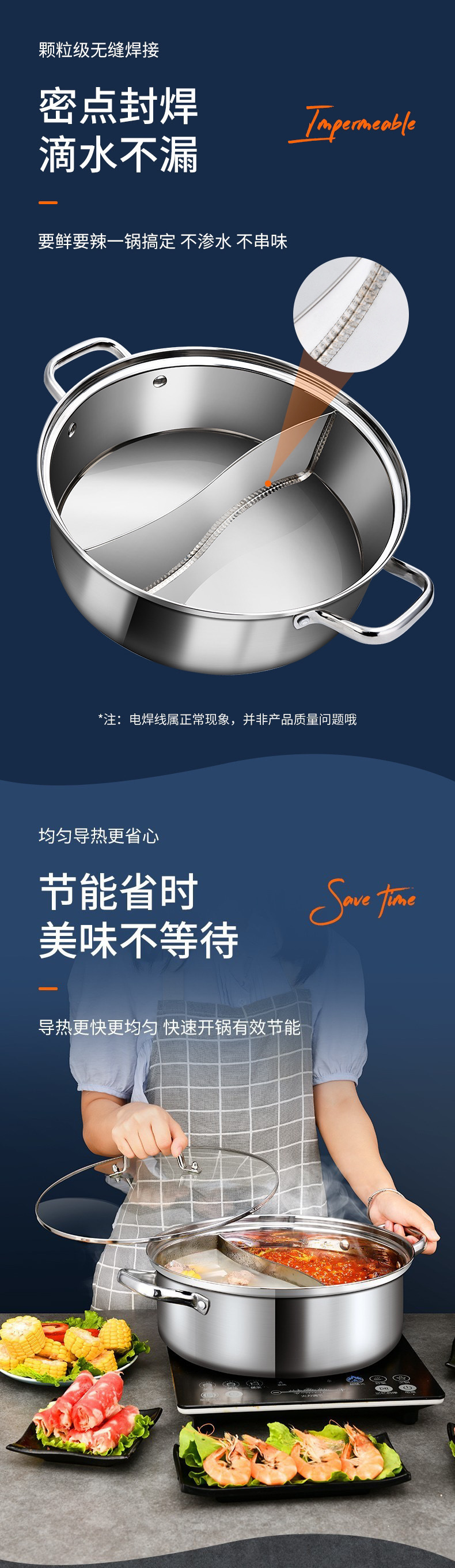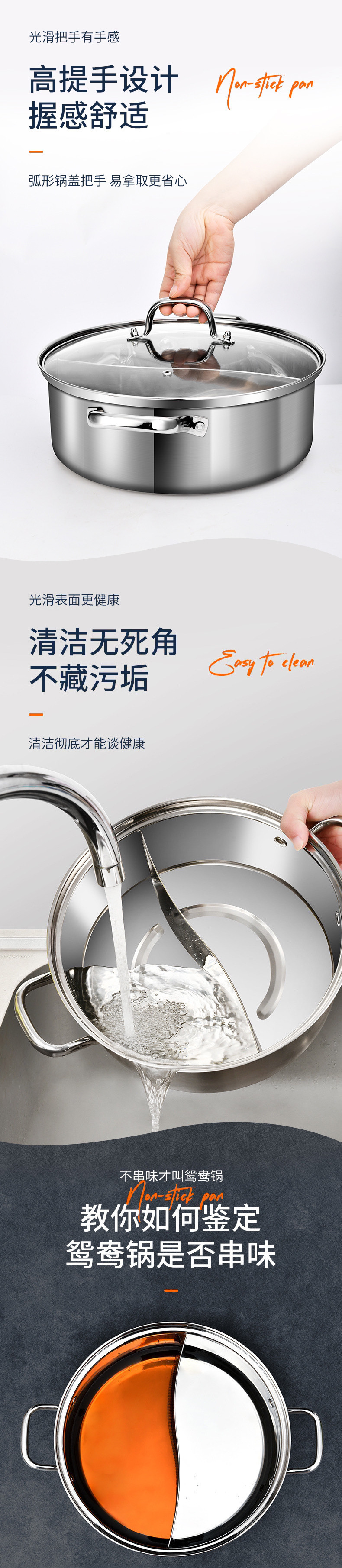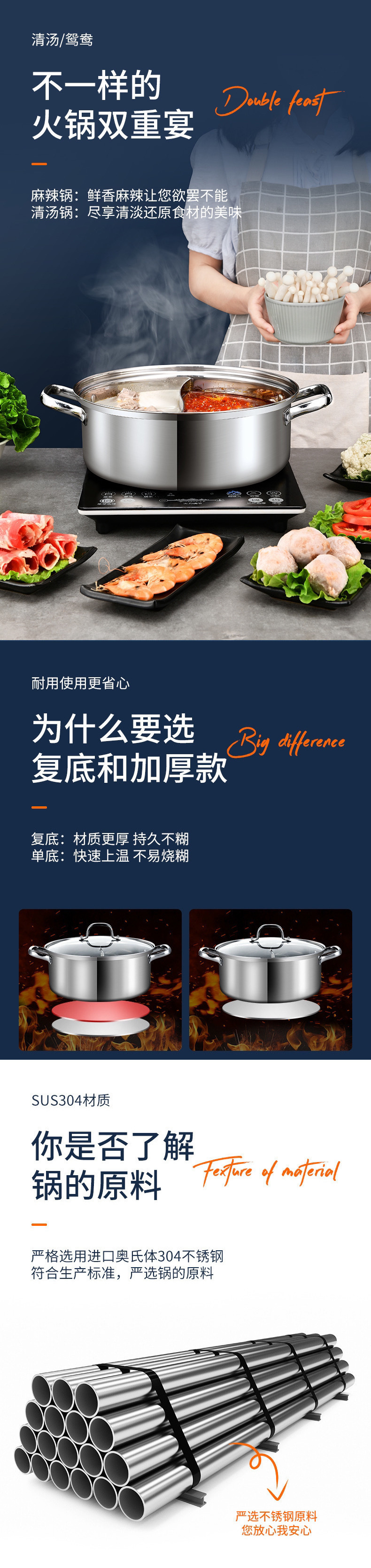 특수 두꺼운 304 스테인레스 스틸 Yuanyang 냄비 가정용 대용량 뜨거운 냄비 밥 냄비 명확한 수프 냄비 유니버설 유도 쿠커 가스 스토브스토어 가기