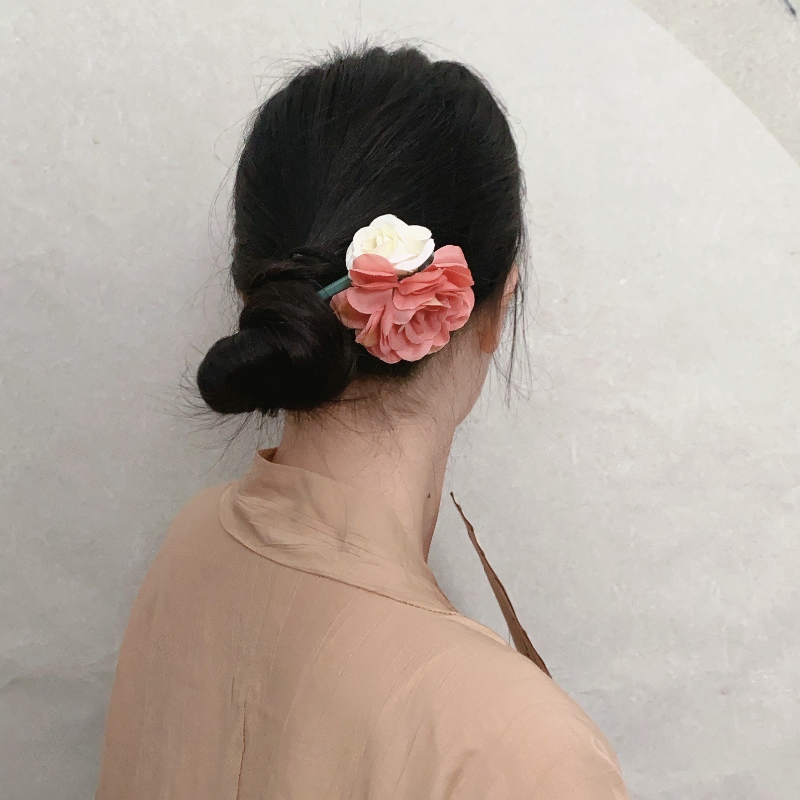 • 핑크와 화이트 꽃 머리핀 T0967D