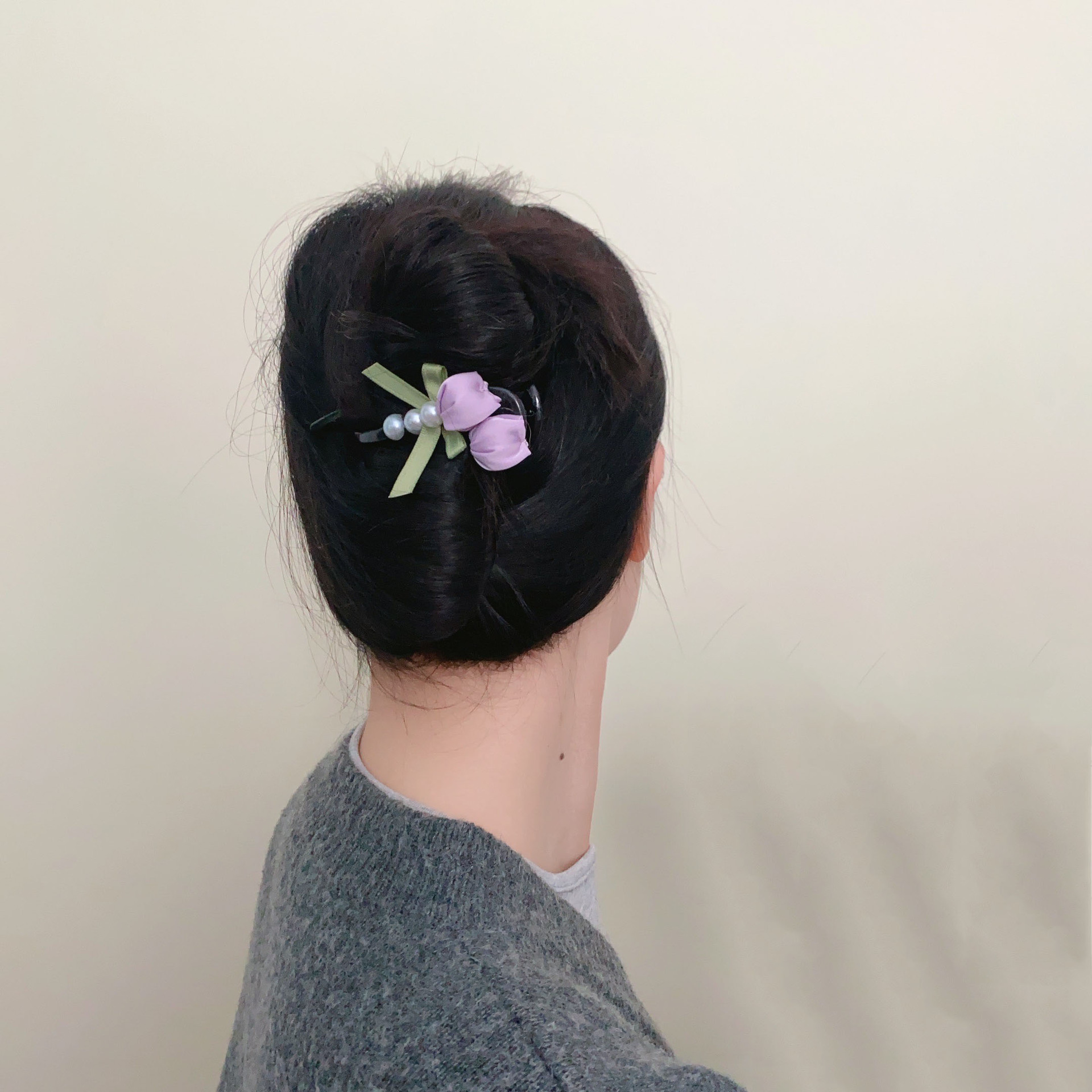 • 보라색 꽃 리본 트위스트 클립 T0951C