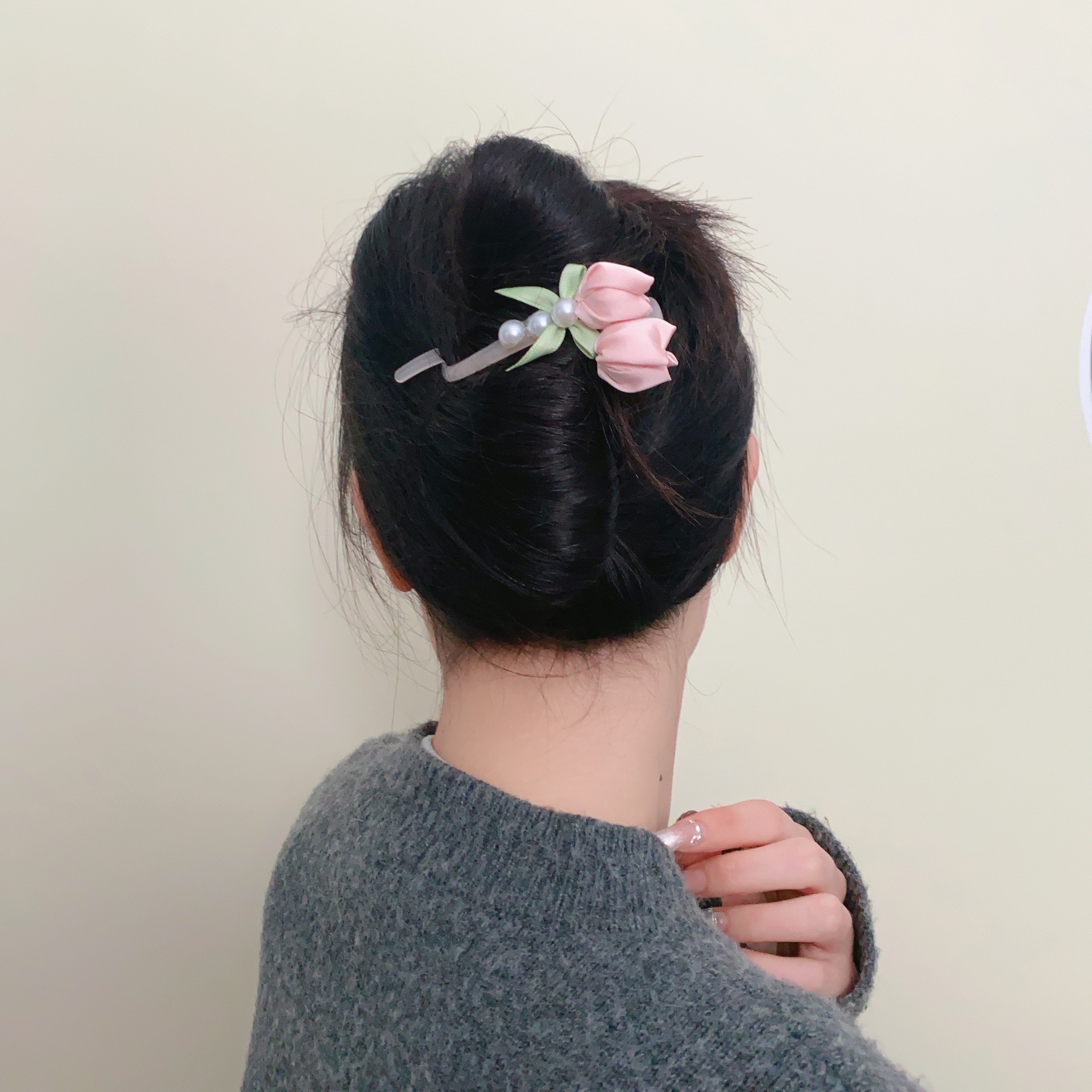 • 핑크 플라워 리본 트위스트 클립 T0951E