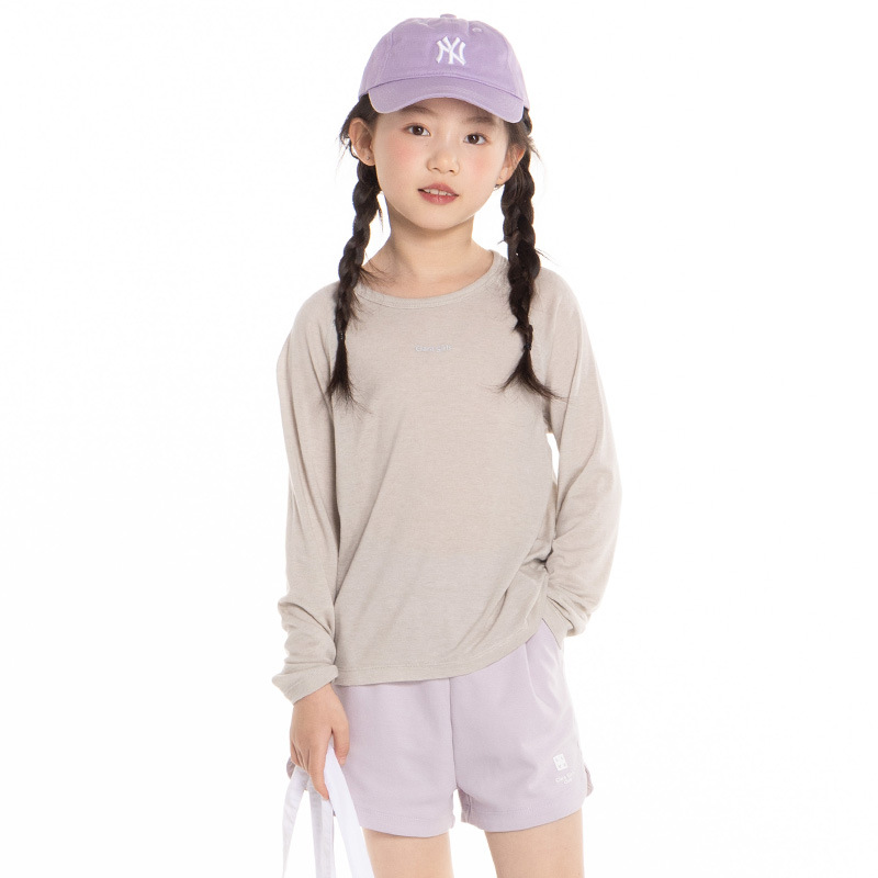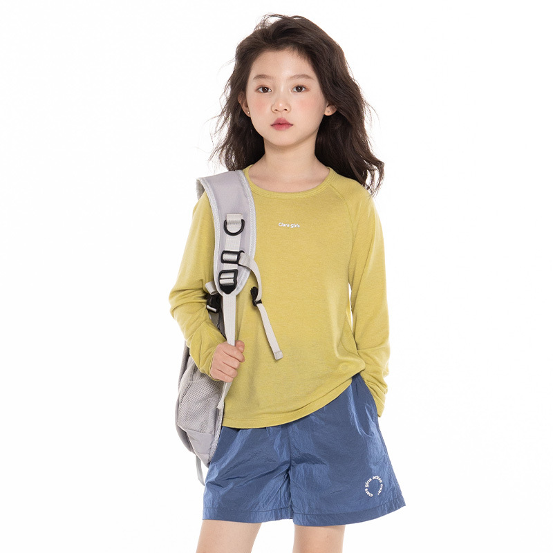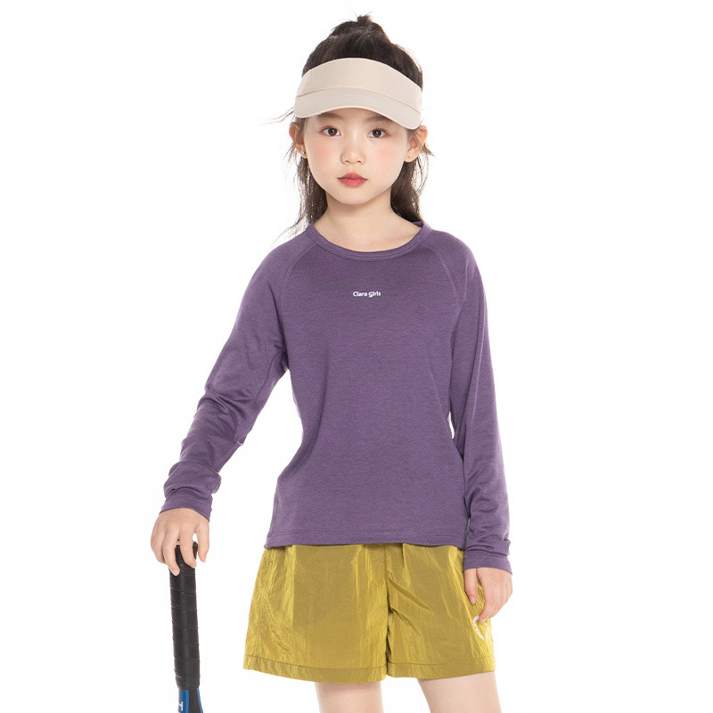 여자 울 텐셀 스포츠 긴팔 티셔츠 2025 여름 새로운 어린이 경량 통기성 탄성베이스 셔츠 탑