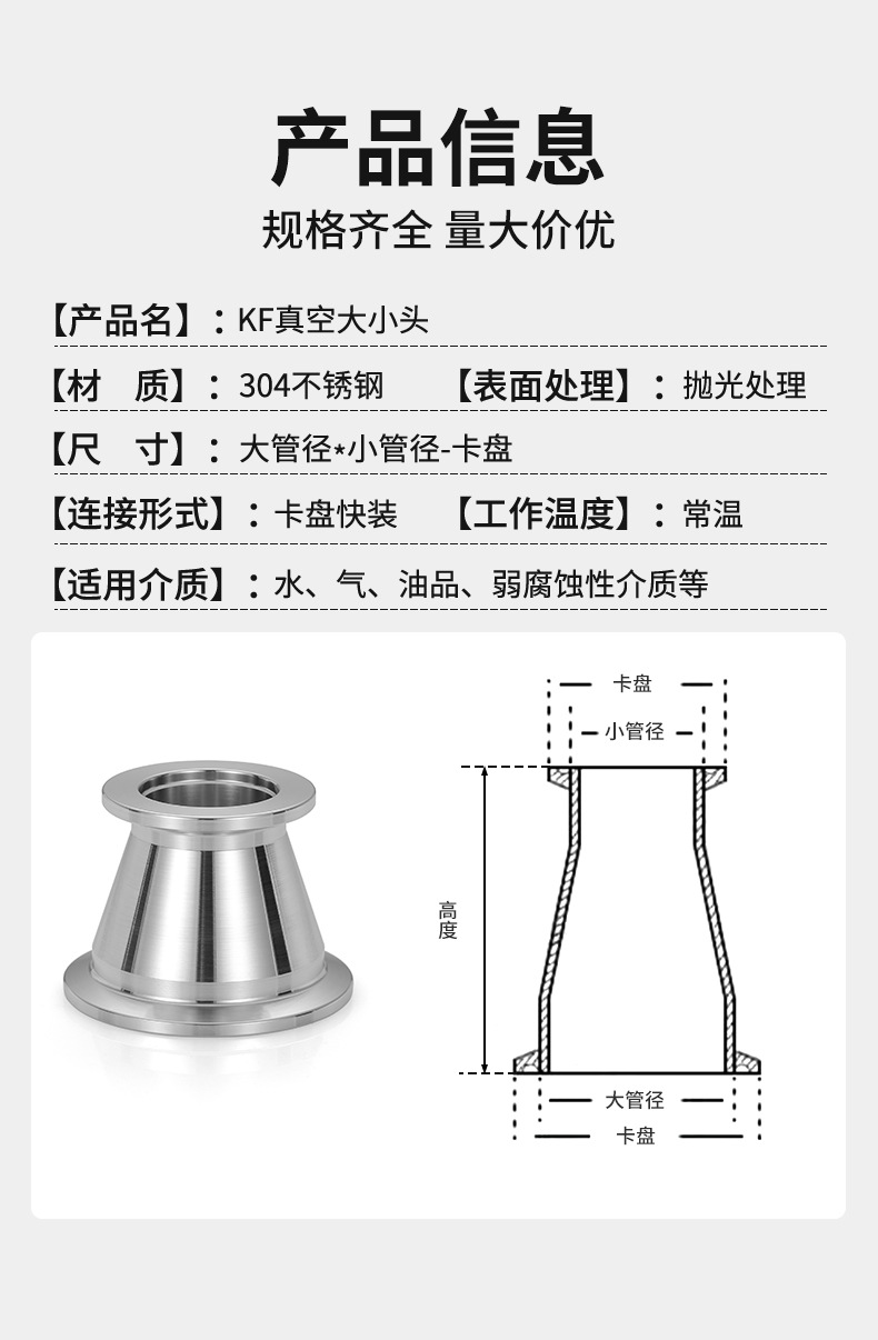 304 스테인레스 스틸 KF 진공 감속기 빠른 피팅 조인트 감소 척 클램프 어댑터스토어 가기
