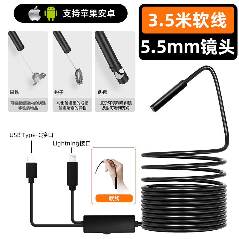 • 무선 WiFi 범용 8mm 3.5m 소프트 케이블(200w HD 화질)