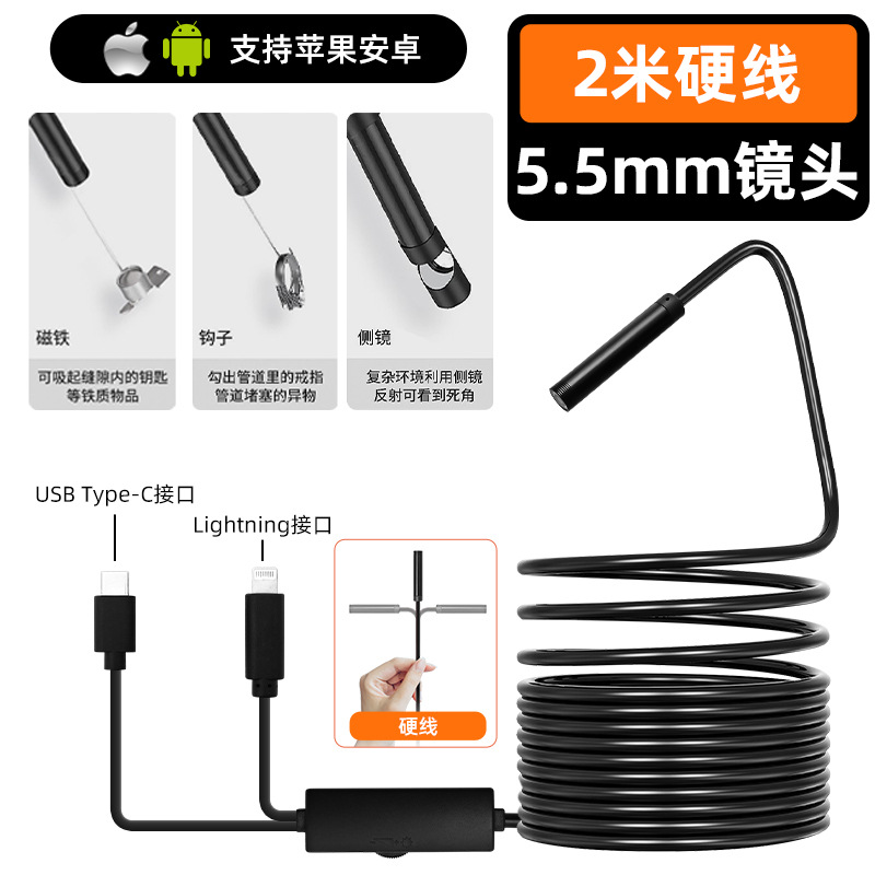• 2-in-1 5.5mm 10m 하드 와이어(Apple 및 Android용 범용)