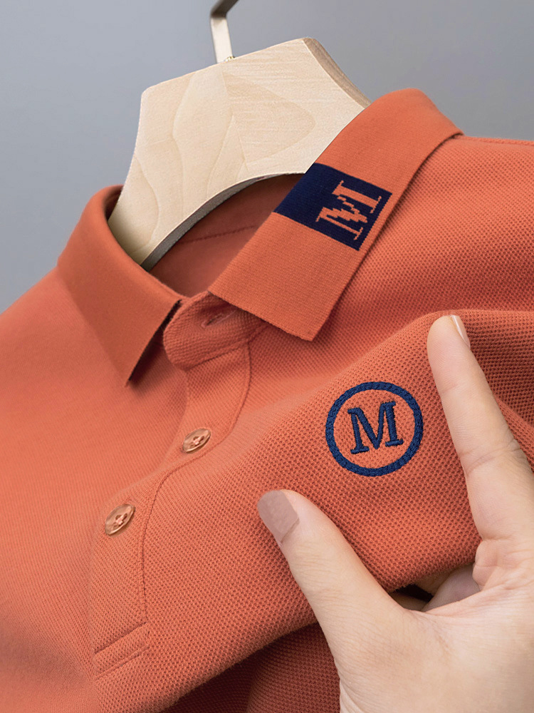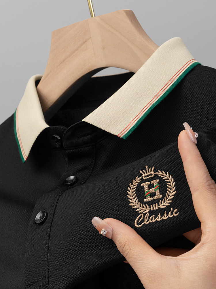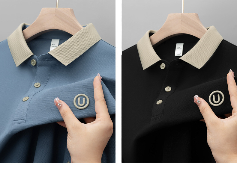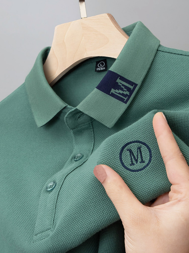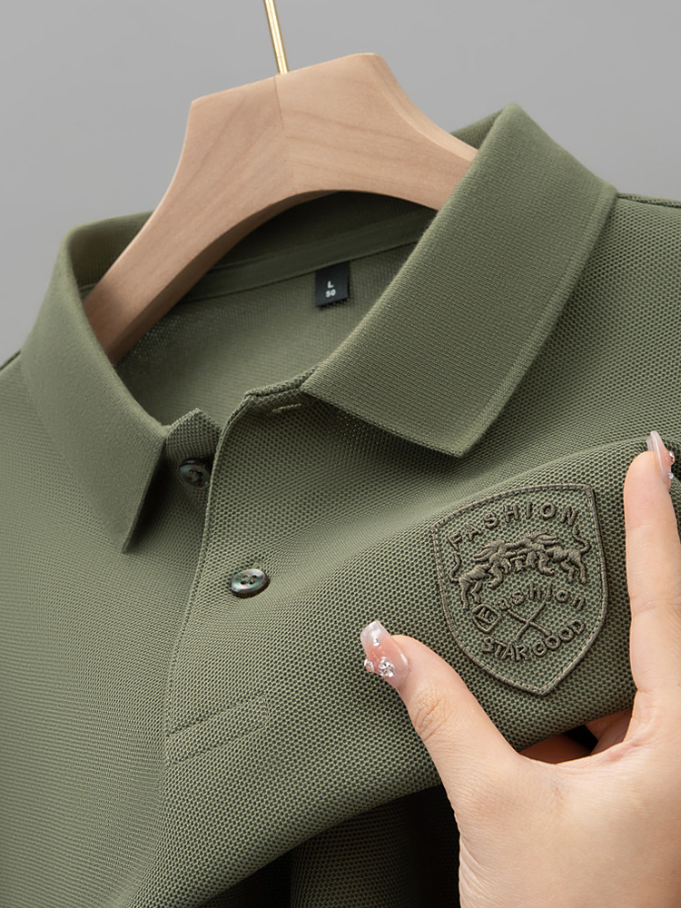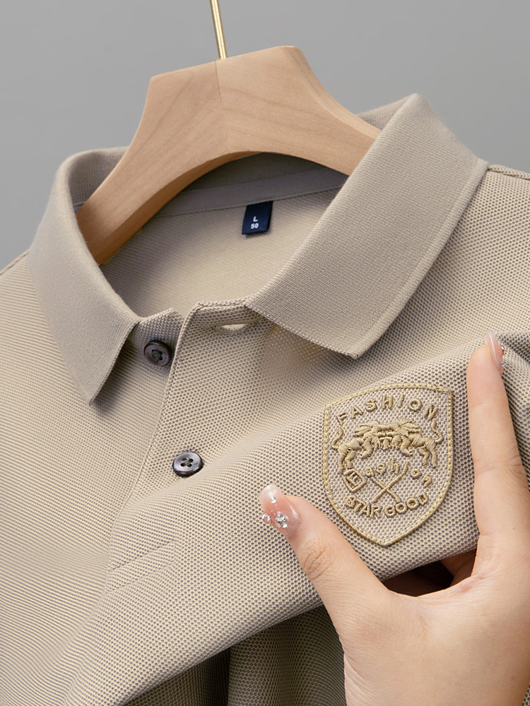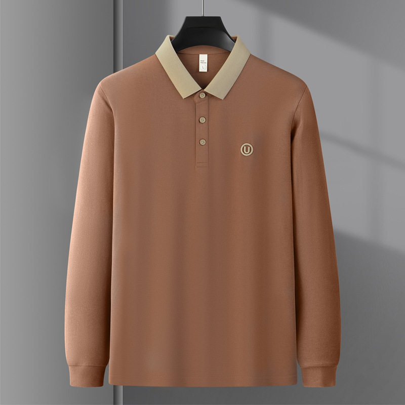 라이트 럭셔리 자수 남성용 긴팔 폴로 셔츠 2025 봄 대비 옷깃 퓨어 코튼 티셔츠 남성용 헤비 루즈 탑스토어 가기
