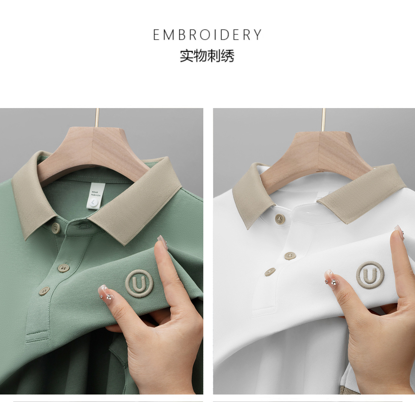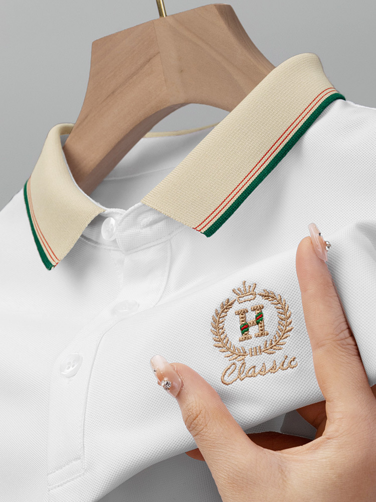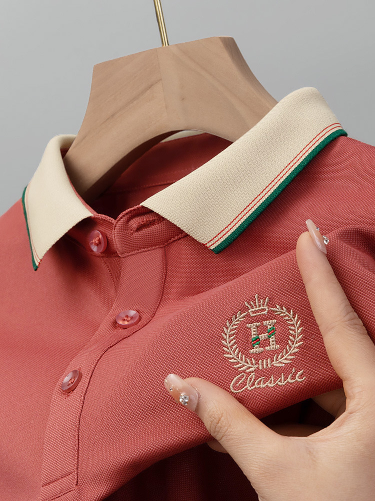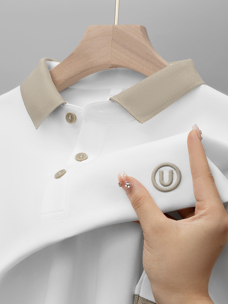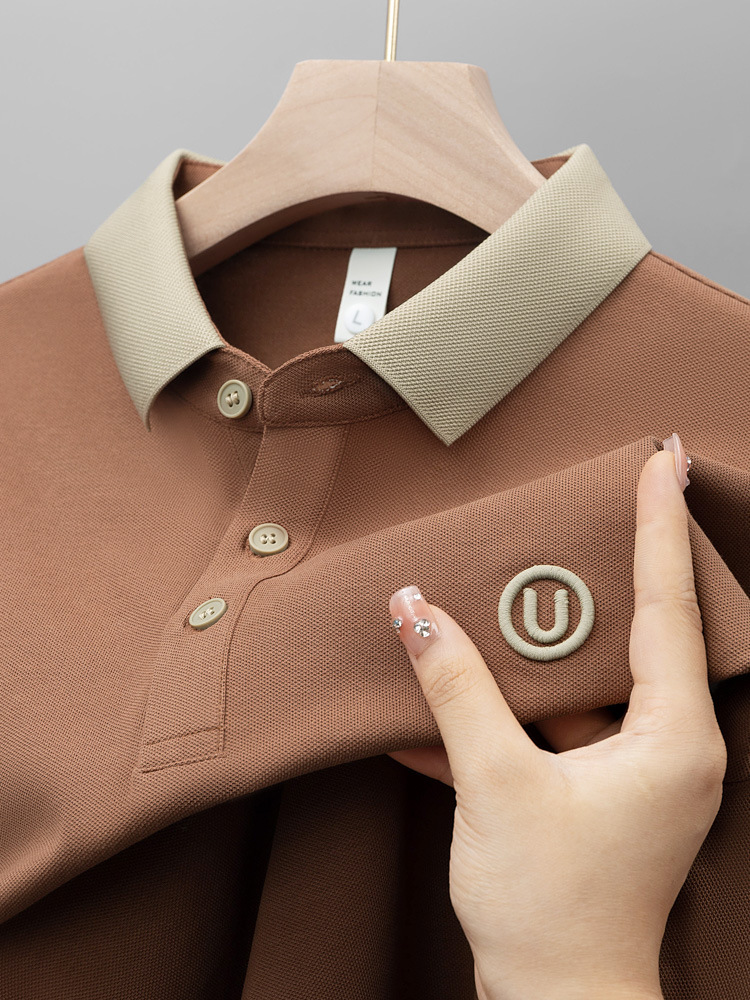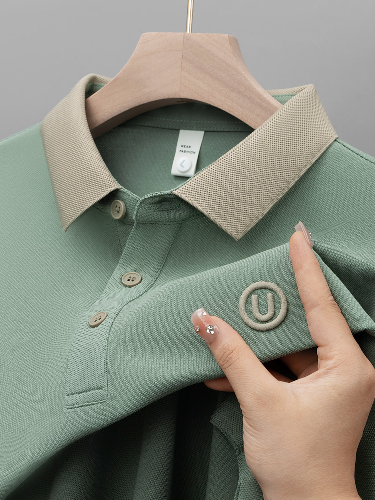 라이트 럭셔리 자수 남성용 긴팔 폴로 셔츠 2025 봄 대비 옷깃 퓨어 코튼 티셔츠 남성용 헤비 루즈 탑스토어 가기
