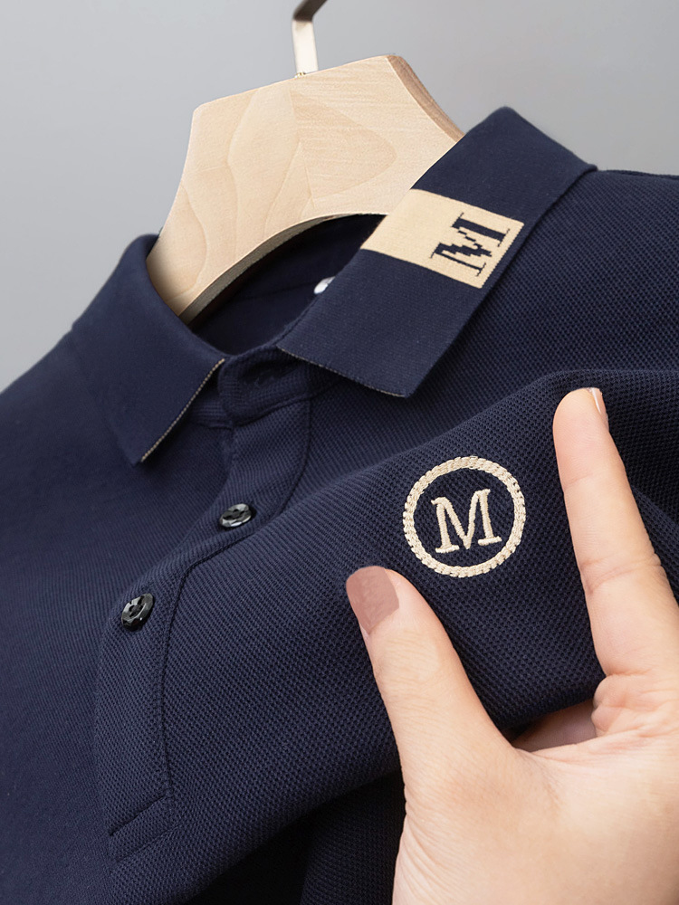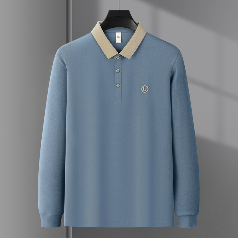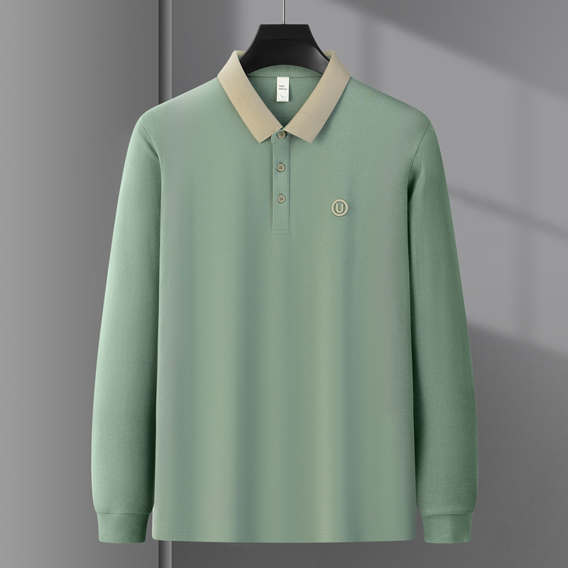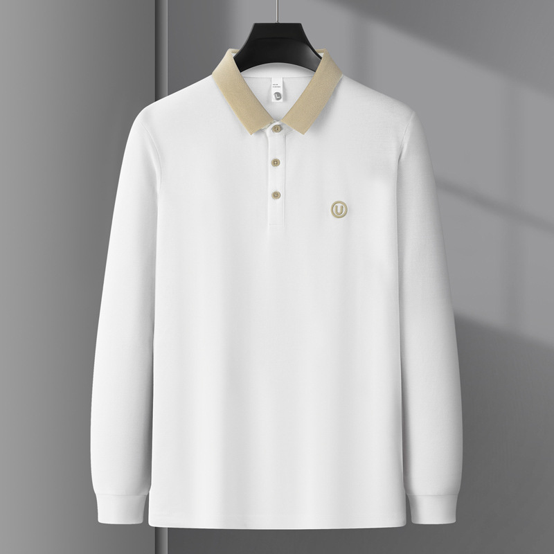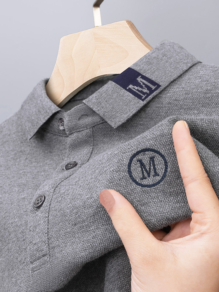 라이트 럭셔리 자수 남성용 긴팔 폴로 셔츠 2025 봄 대비 옷깃 퓨어 코튼 티셔츠 남성용 헤비 루즈 탑