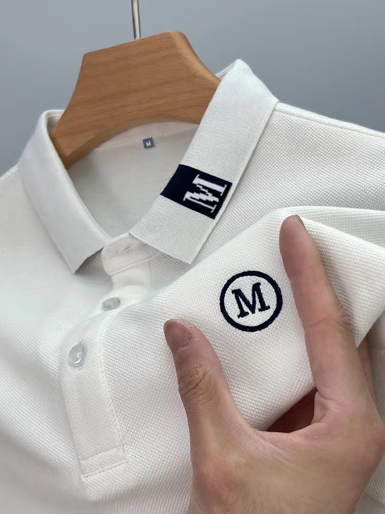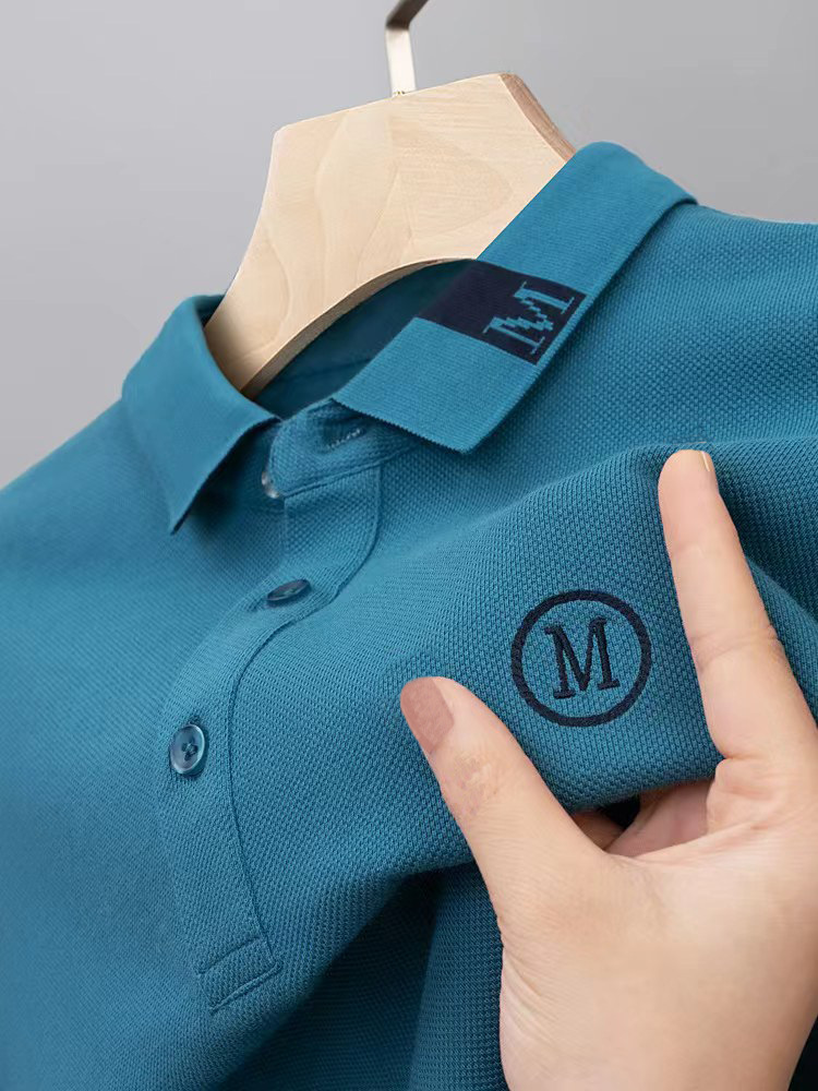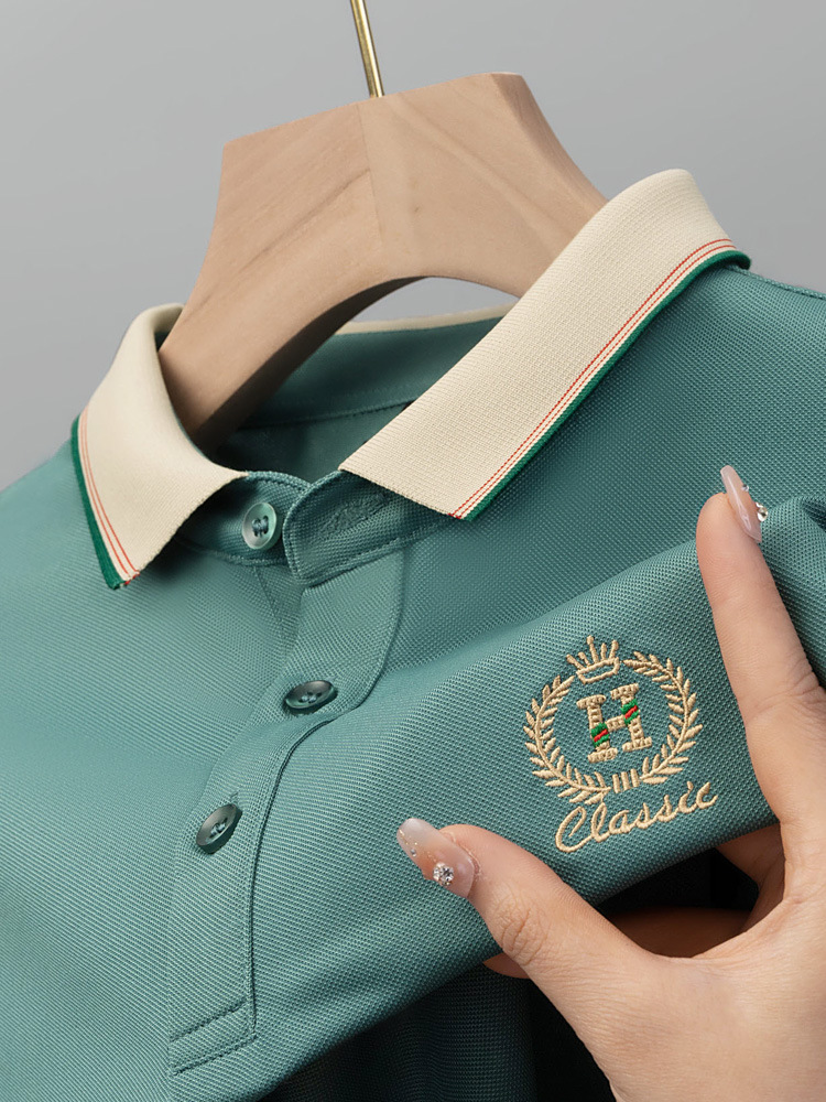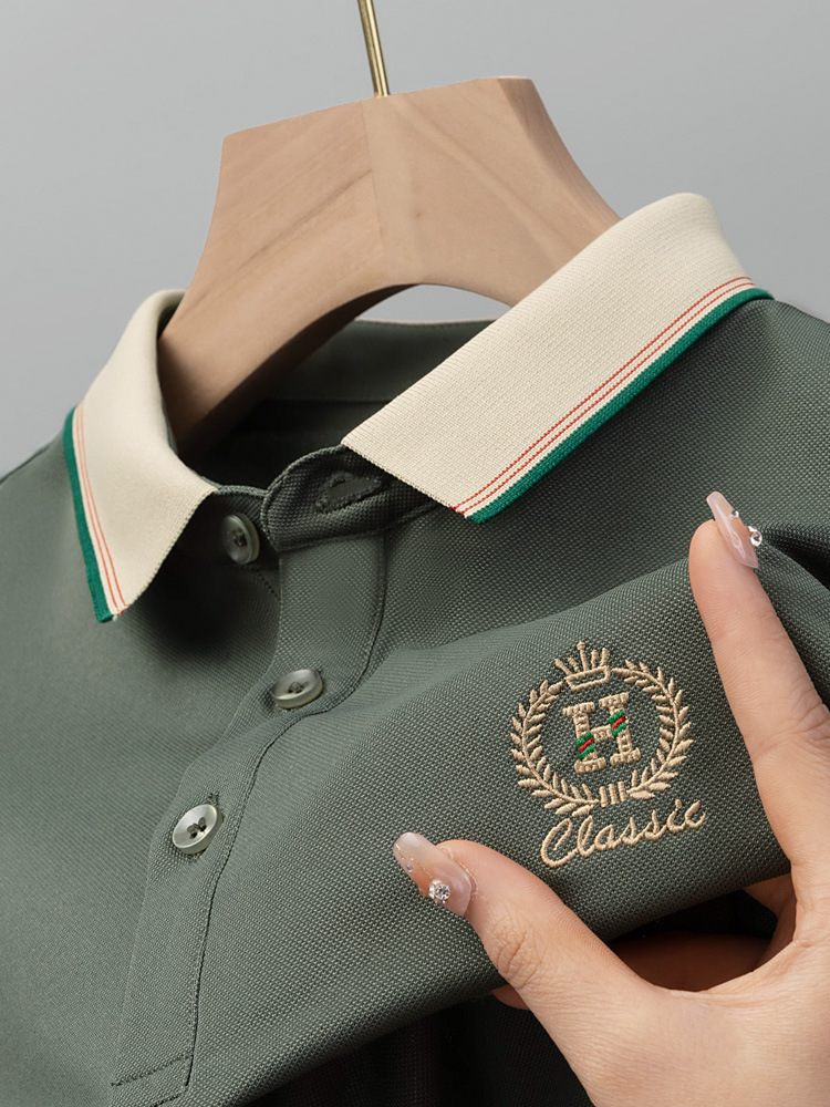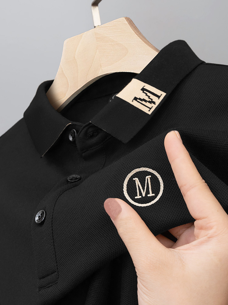 라이트 럭셔리 자수 남성용 긴팔 폴로 셔츠 2025 봄 대비 옷깃 퓨어 코튼 티셔츠 남성용 헤비 루즈 탑