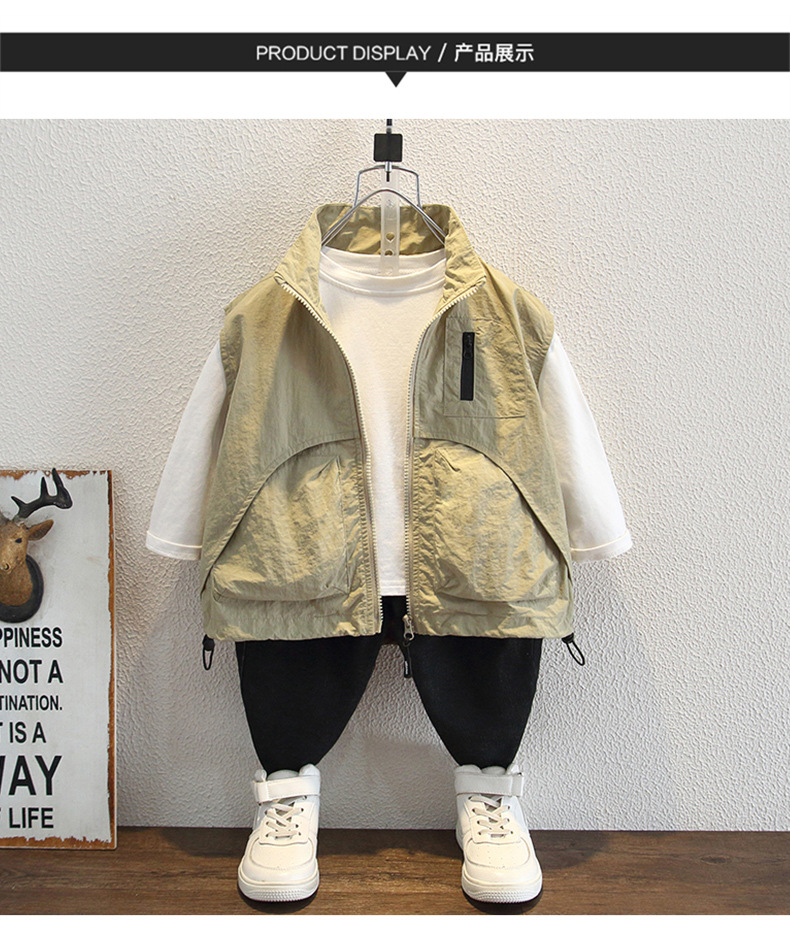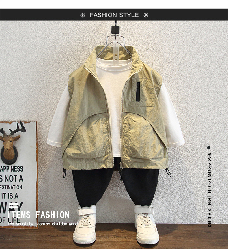 소년 조끼 2025 새 어린이 봄 착용 한국 팬 Pi Shuai Waistcoat 아기의 봄과 가을 소년 멋진 잘 생긴 조끼 착용