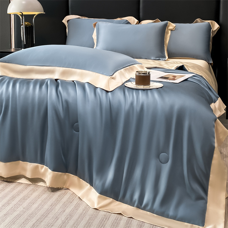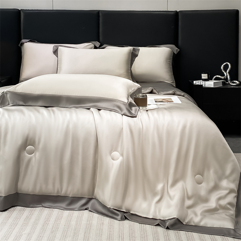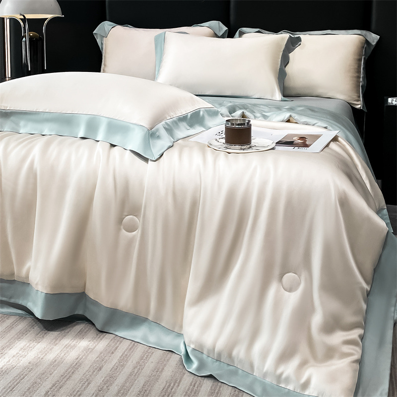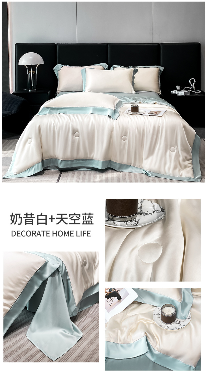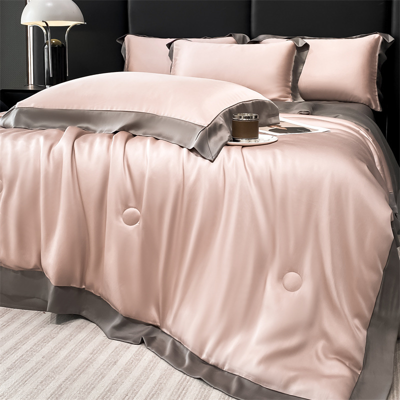 새로운 스타일 세척 실크 여름 퀼트 4 피스 솔리드 컬러 더블 스펠 넓은 여름 쿨 퀼트 에어컨 퀼트 학생 싱글 더블 여름 퀼트