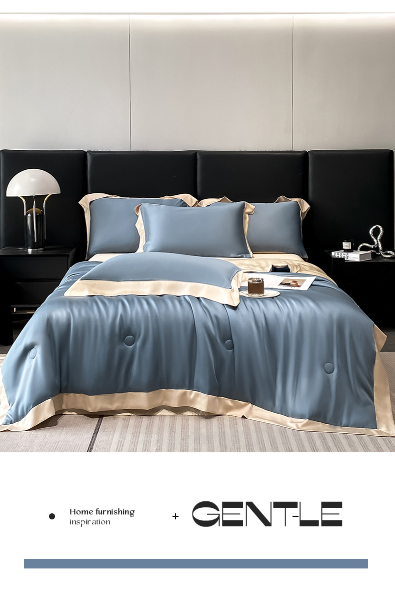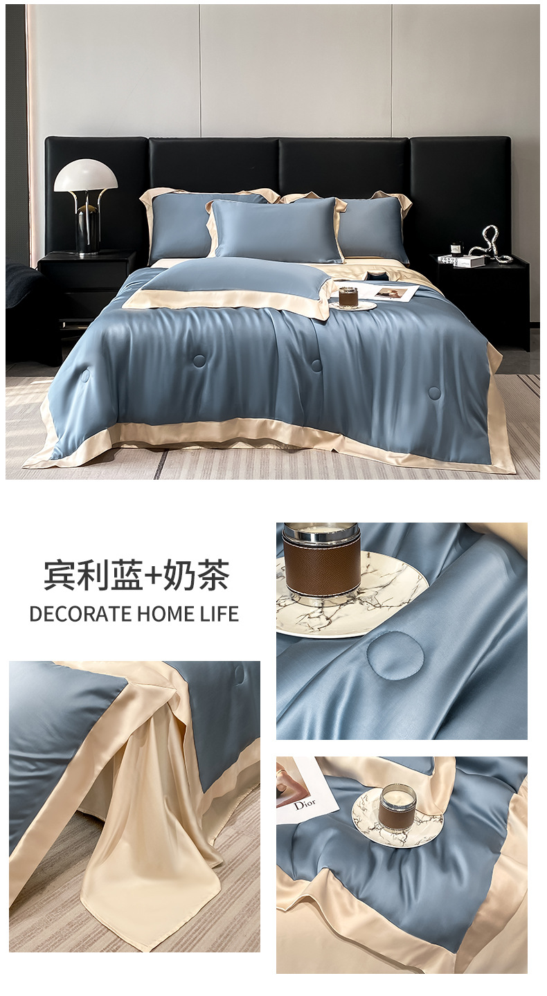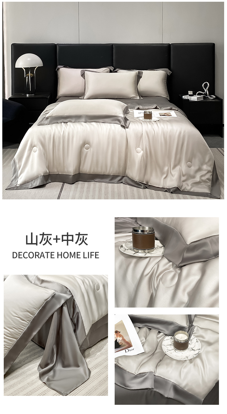 새로운 스타일 세척 실크 여름 퀼트 4 피스 솔리드 컬러 더블 스펠 넓은 여름 쿨 퀼트 에어컨 퀼트 학생 싱글 더블 여름 퀼트