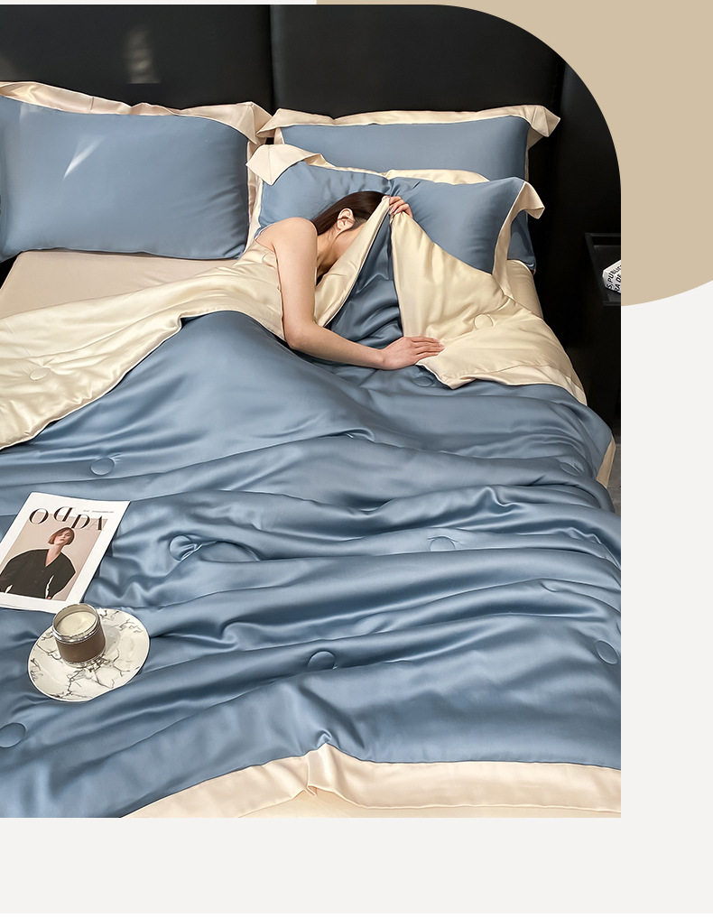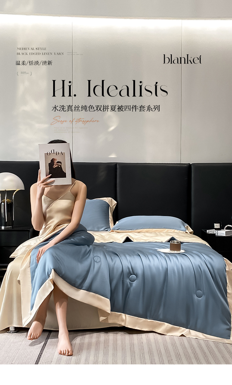새로운 스타일 세척 실크 여름 퀼트 4 피스 솔리드 컬러 더블 스펠 넓은 여름 쿨 퀼트 에어컨 퀼트 학생 싱글 더블 여름 퀼트스토어 가기