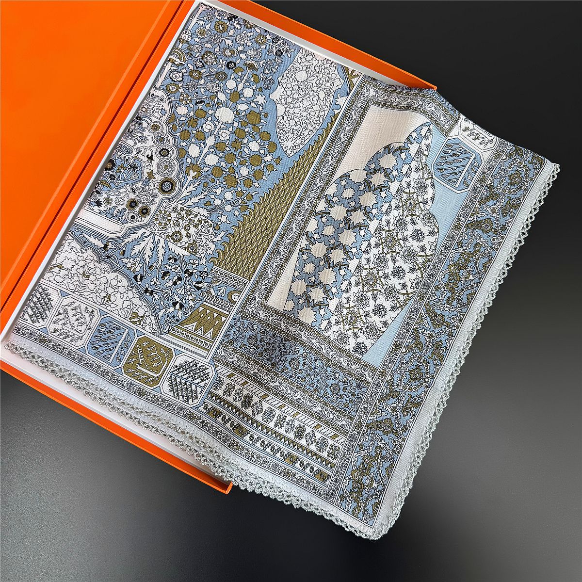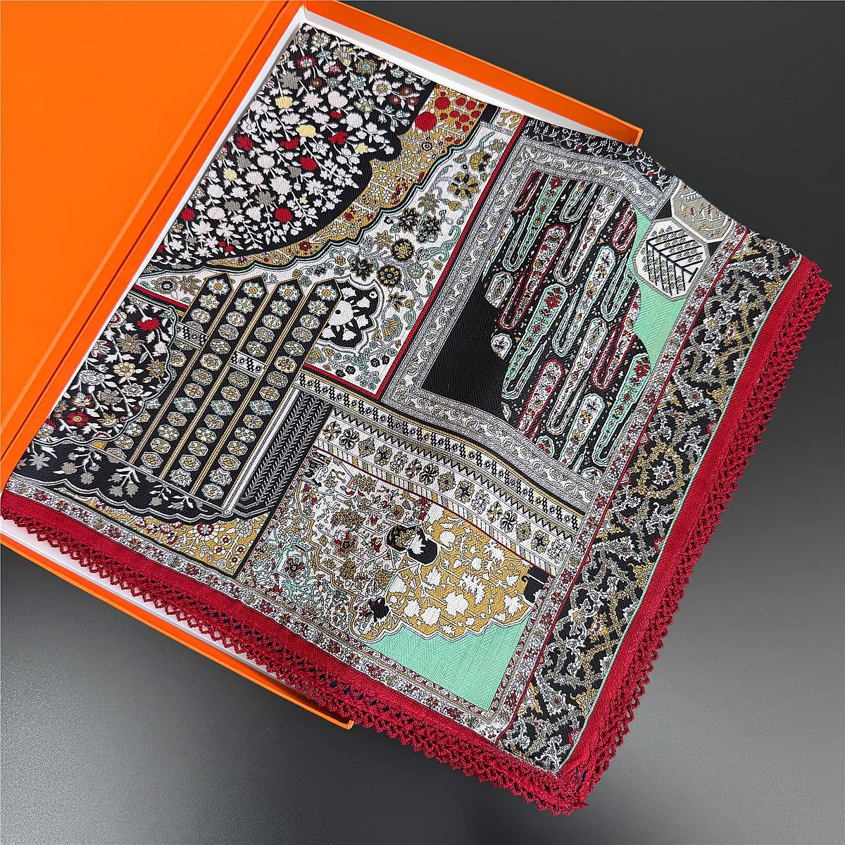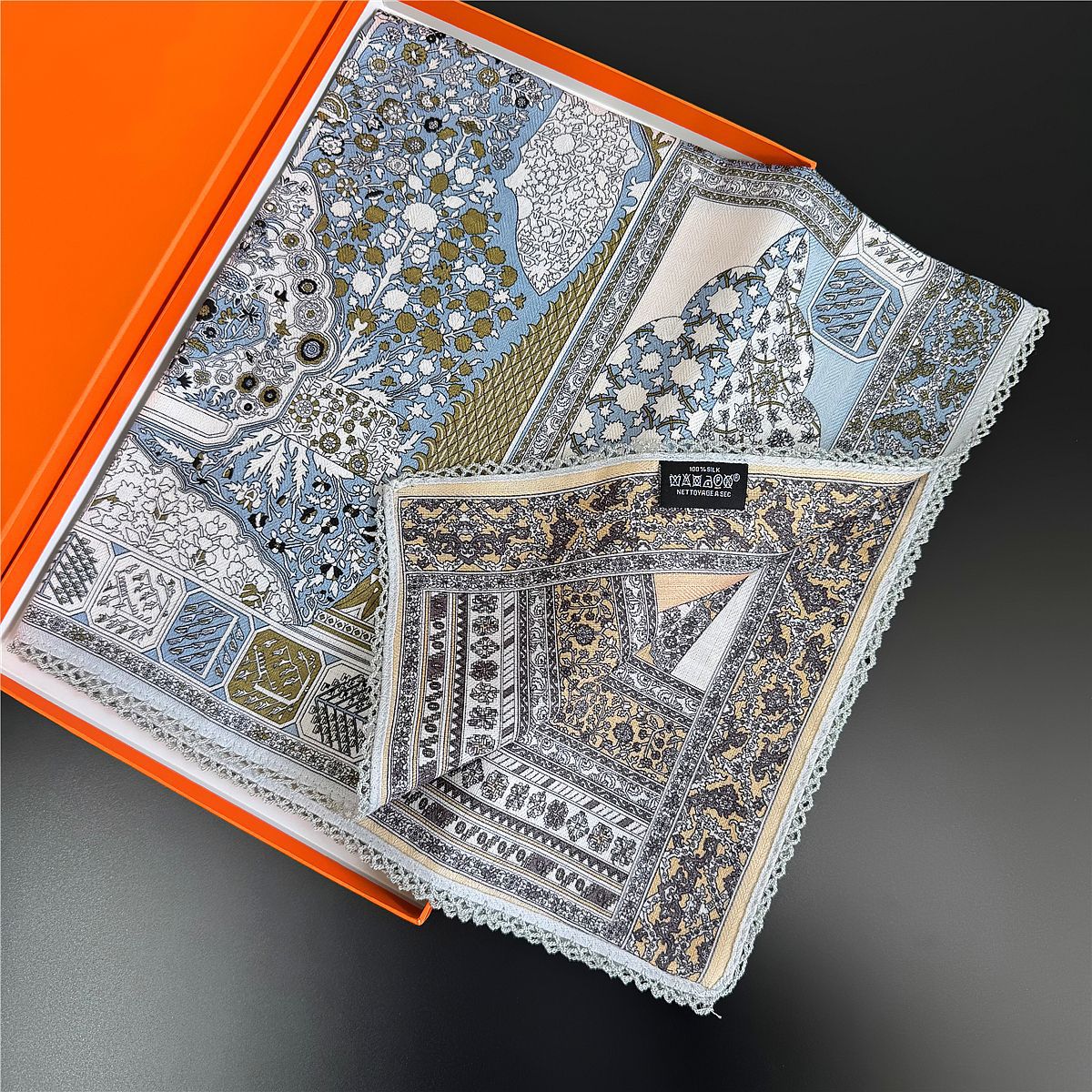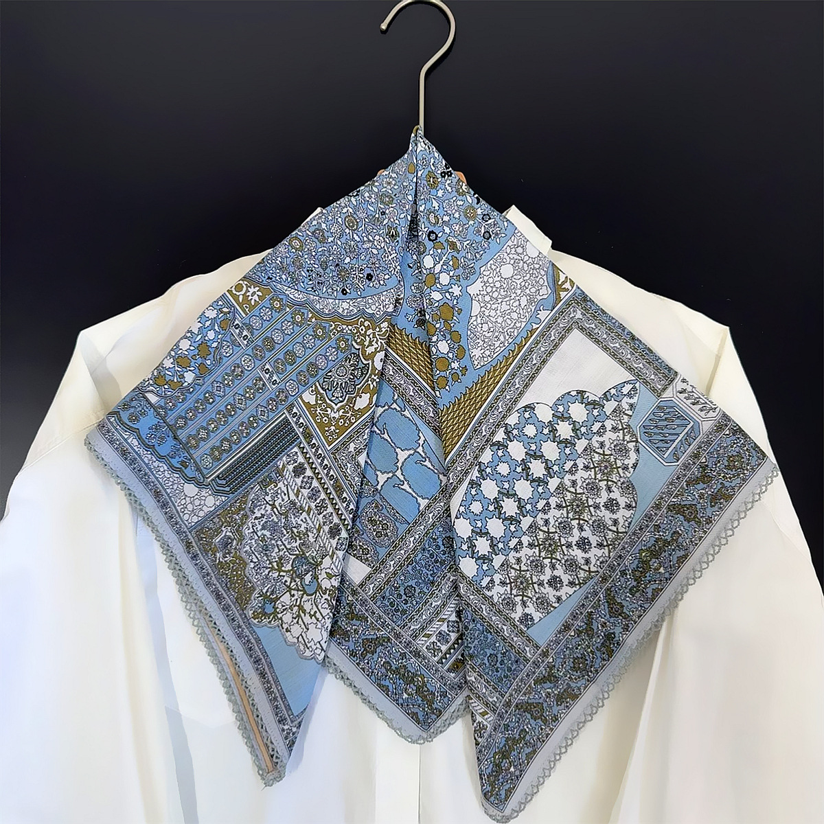 국경 간 뜨거운 판매 양면 컬러 스퀘어 스카프 레이스 벨벳 스카프 2025 새로운 봄 복고풍 스카프스토어 가기