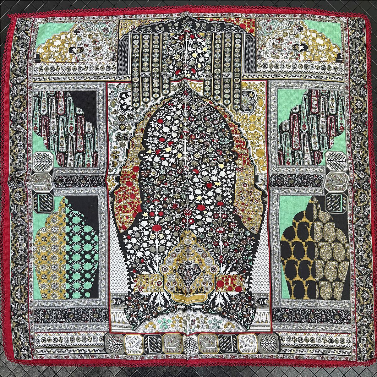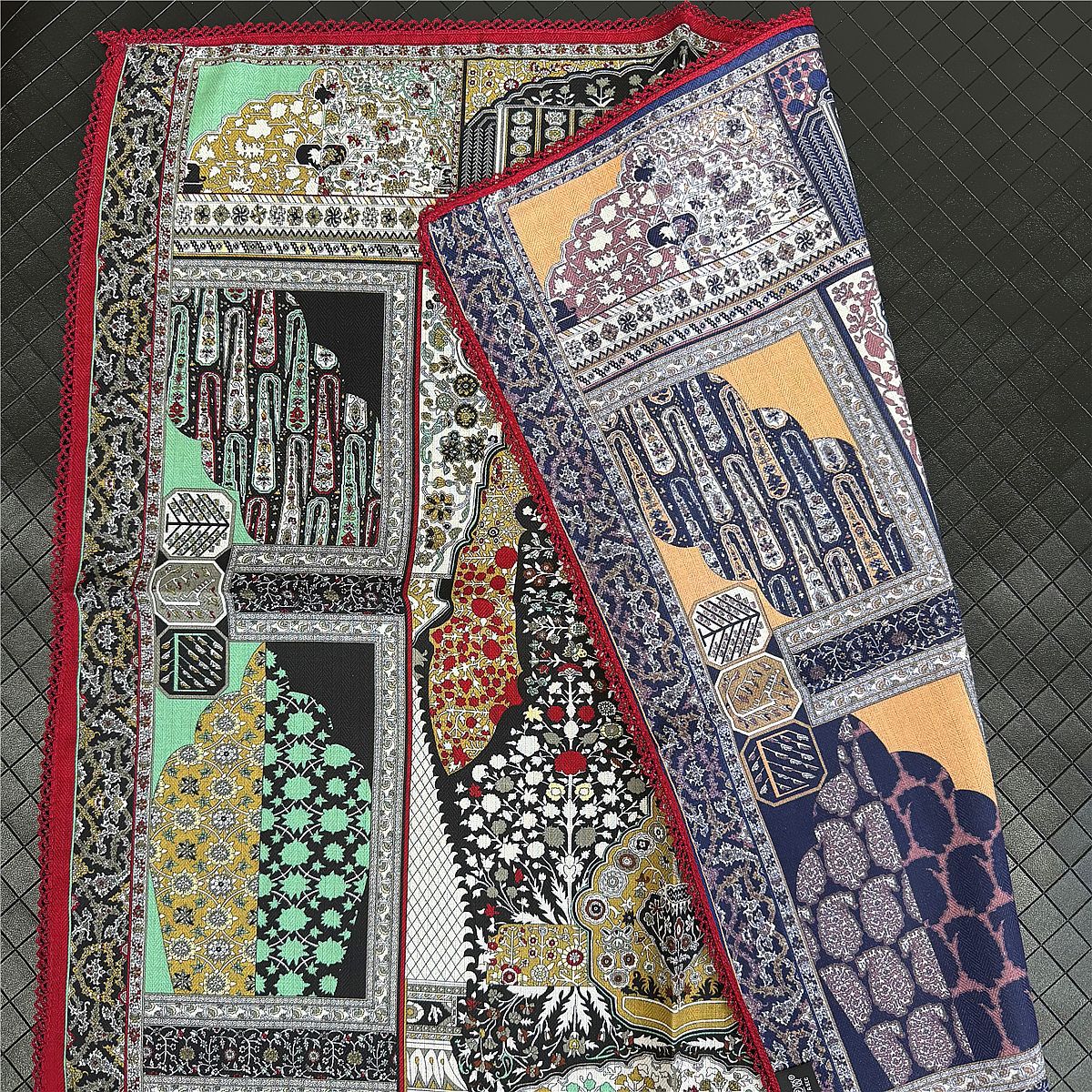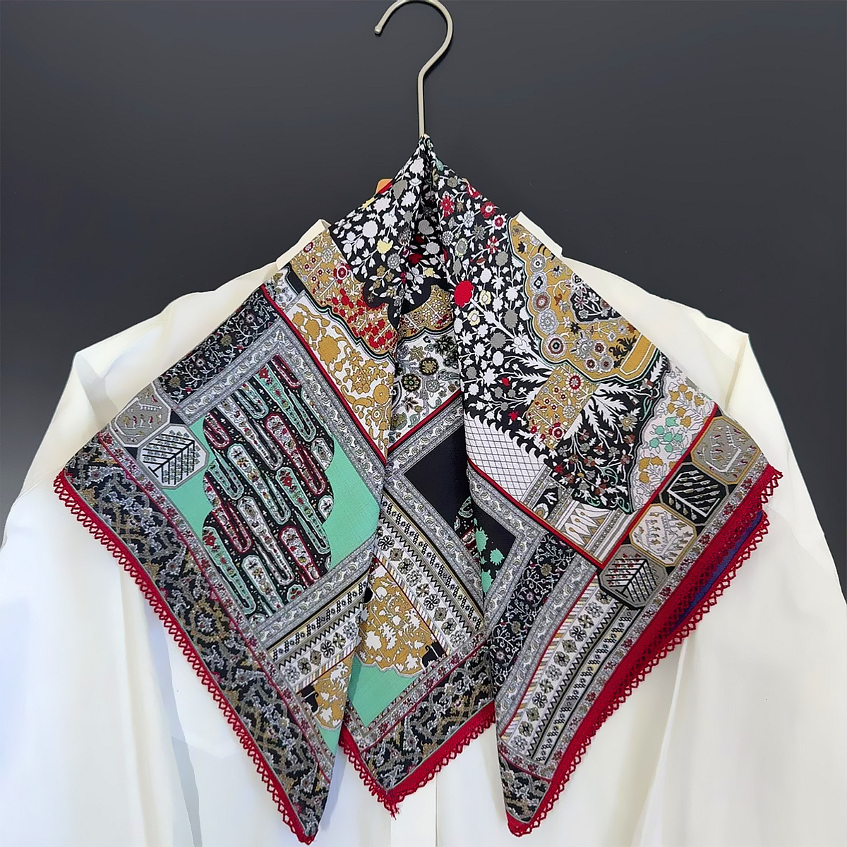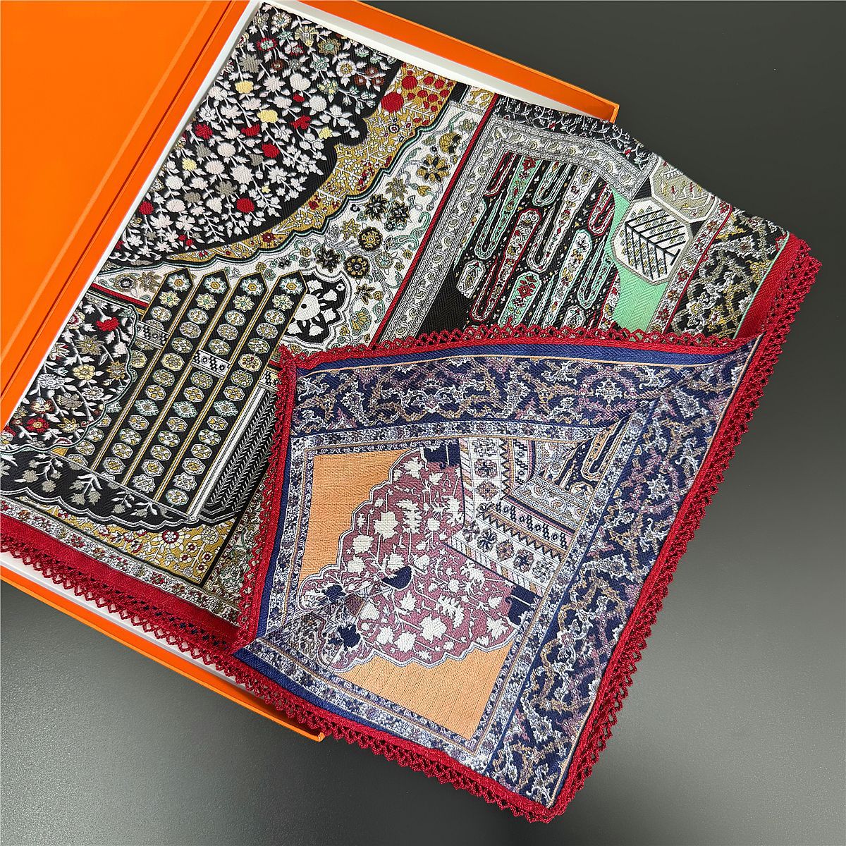 국경 간 뜨거운 판매 양면 컬러 스퀘어 스카프 레이스 벨벳 스카프 2025 새로운 봄 복고풍 스카프