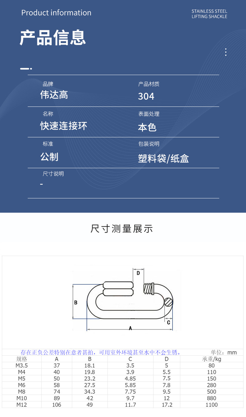 304 스테인레스 스틸 퀵 링크 링 연결 링 활주로 버클로드 베어링 마운틴 클라이밍 안전 버클 퀵 훅 체인 버클