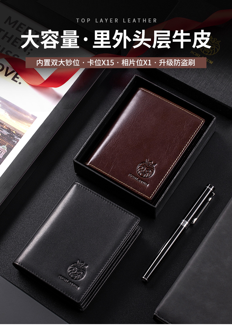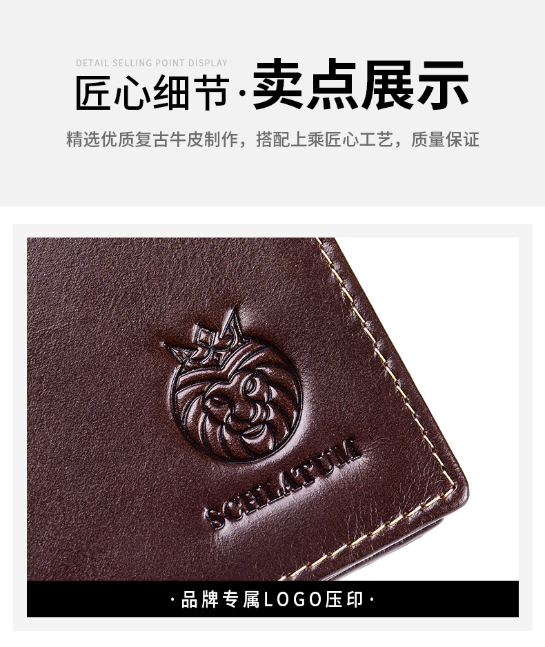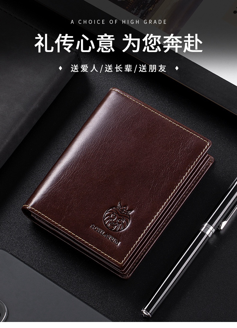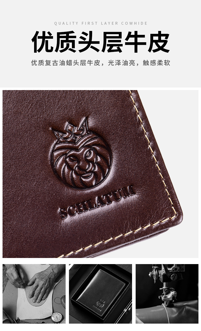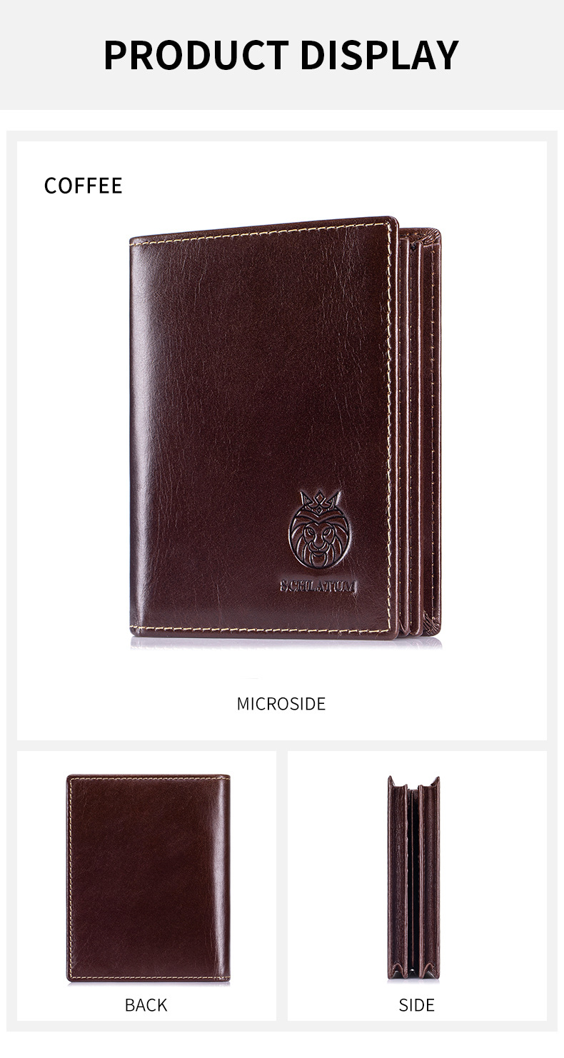 사자 라이덴 탑 레이어 Cowhide RFID 도난 방지 브러시 지갑 남자의 짧은 정품 가죽 복고풍 국경 남자의 수직 지갑스토어 가기