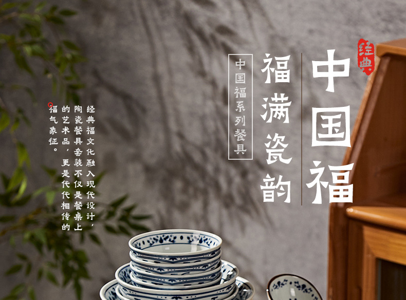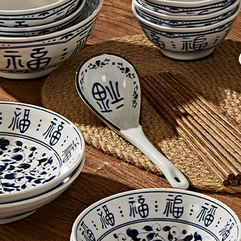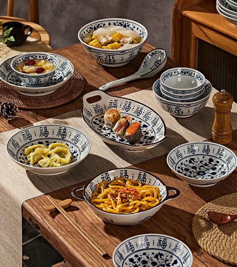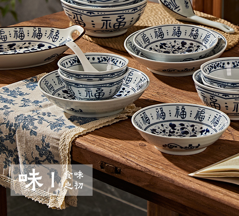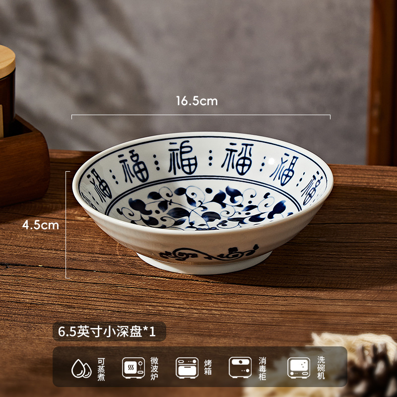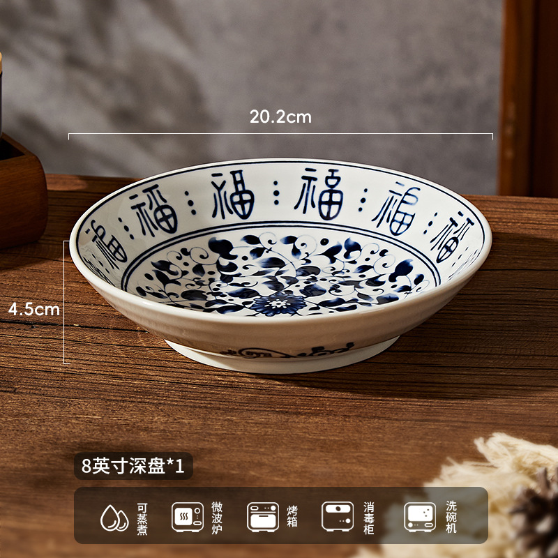 중국 가정용 파란색과 흰색 세라믹 식기 접시 디쉬 포인트 플레이트 딥 플레이트 세라믹 플레이트 밥 그릇 수프 보울 푸지 언더 유약 색상스토어 가기