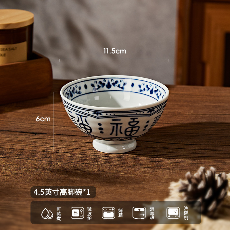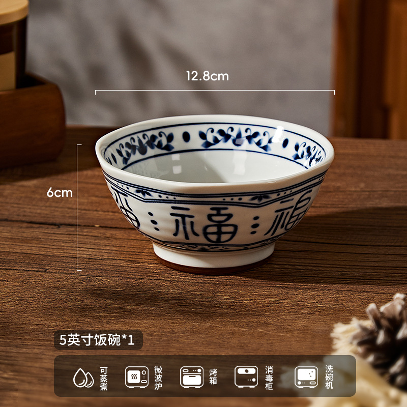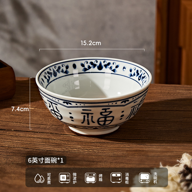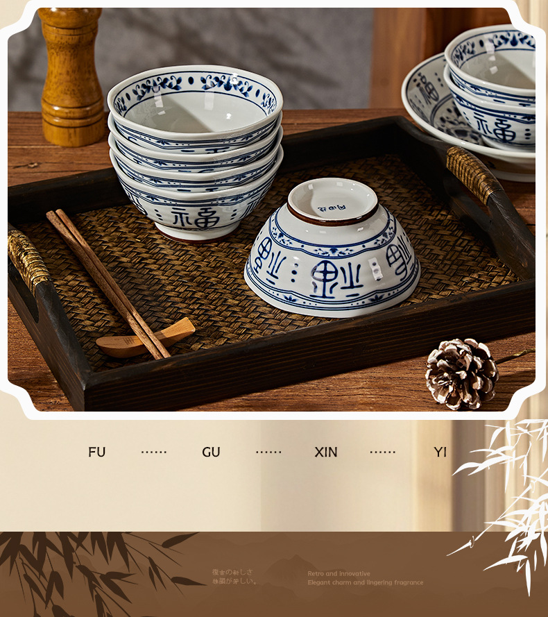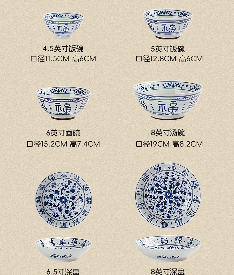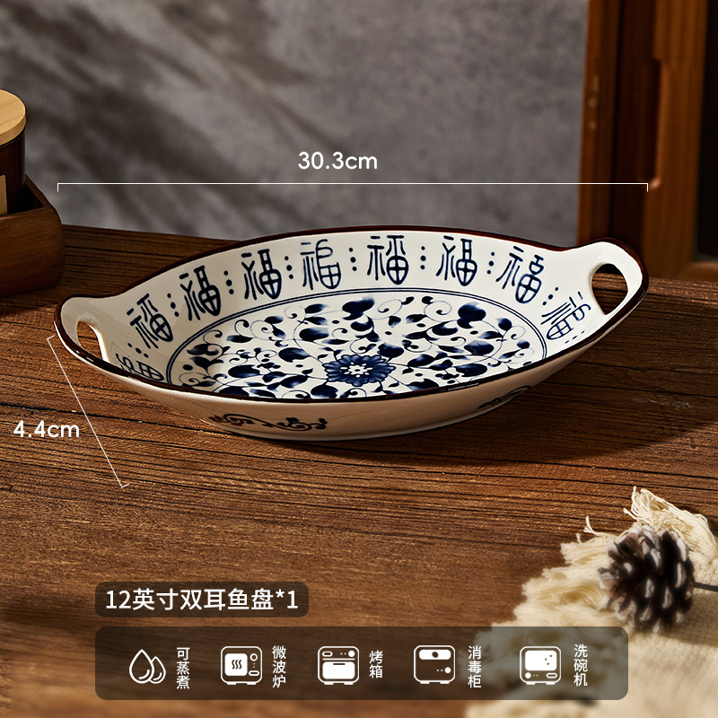 중국 가정용 파란색과 흰색 세라믹 식기 접시 디쉬 포인트 플레이트 딥 플레이트 세라믹 플레이트 밥 그릇 수프 보울 푸지 언더 유약 색상스토어 가기