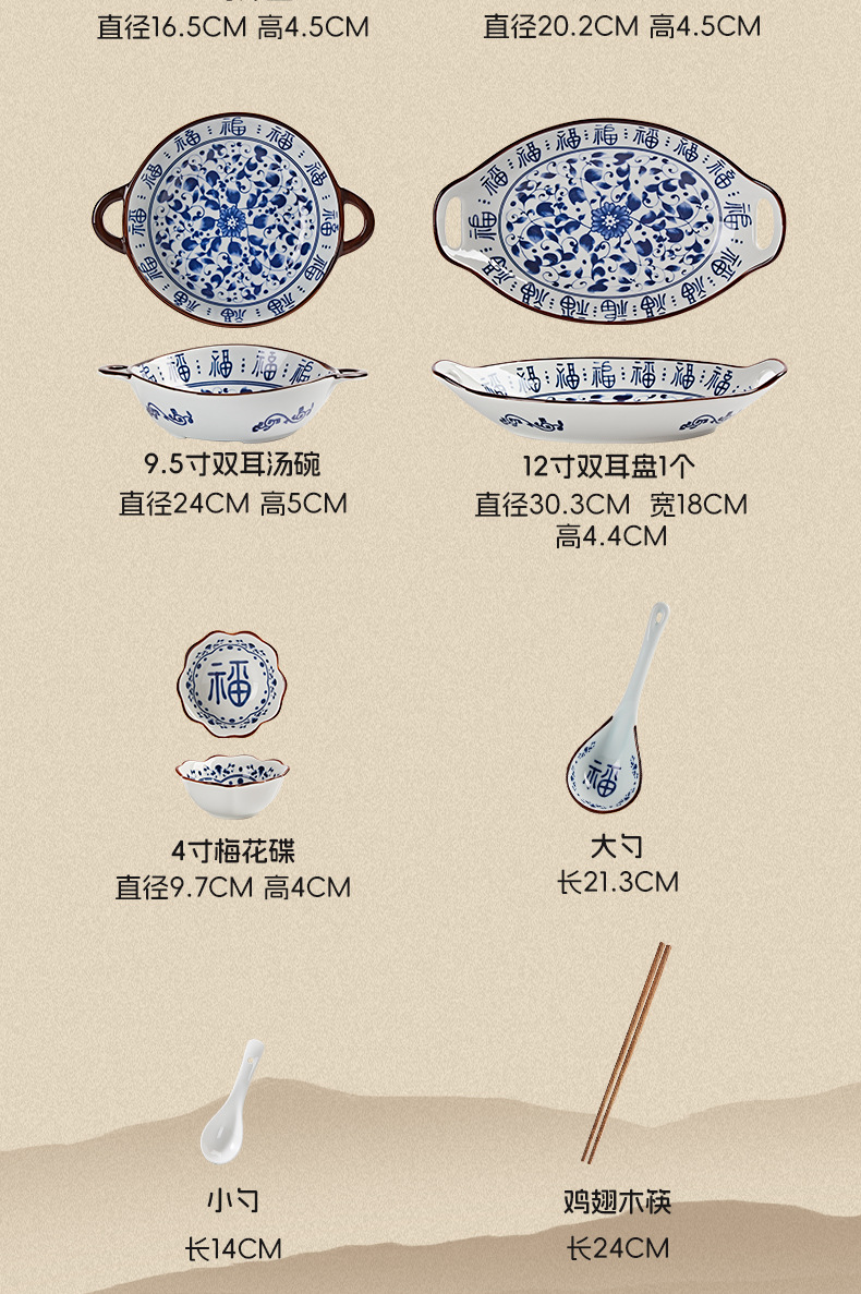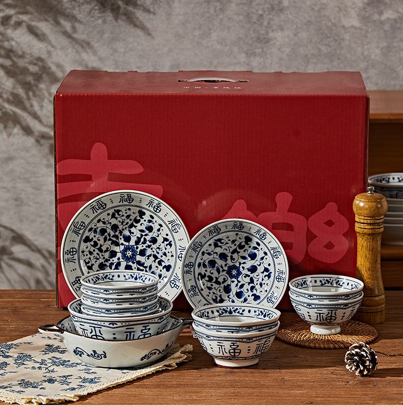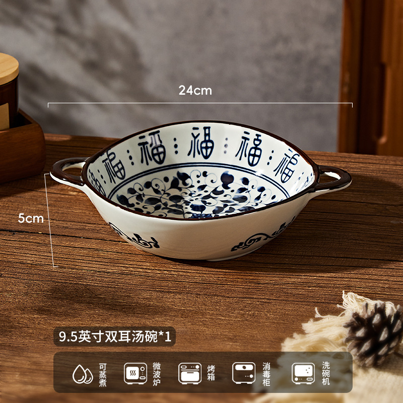중국 가정용 파란색과 흰색 세라믹 식기 접시 디쉬 포인트 플레이트 딥 플레이트 세라믹 플레이트 밥 그릇 수프 보울 푸지 언더 유약 색상