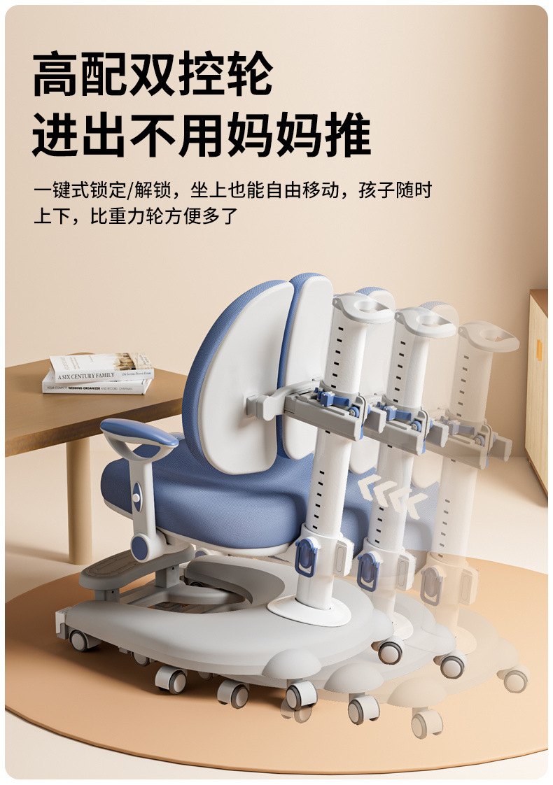 • 유베이 체어 9P [등추출 자세/잠금 해제 휠/다차원 페달] 라이트 블루