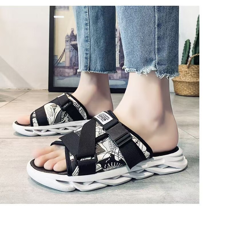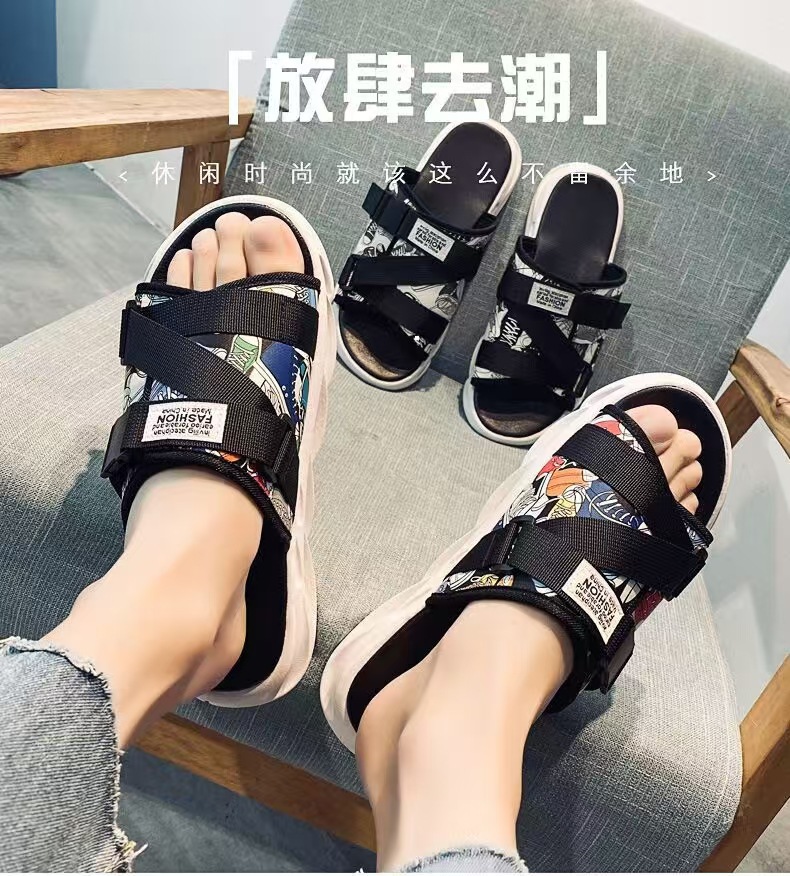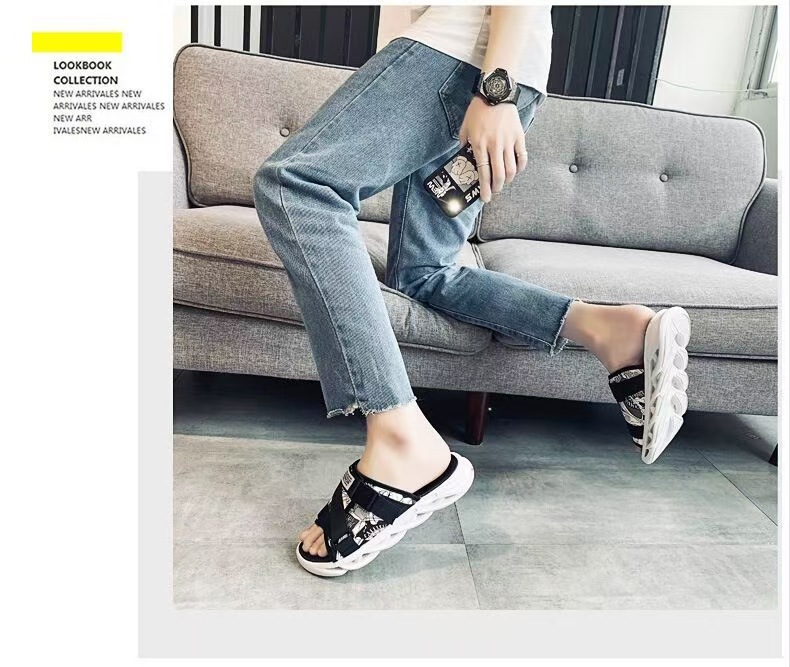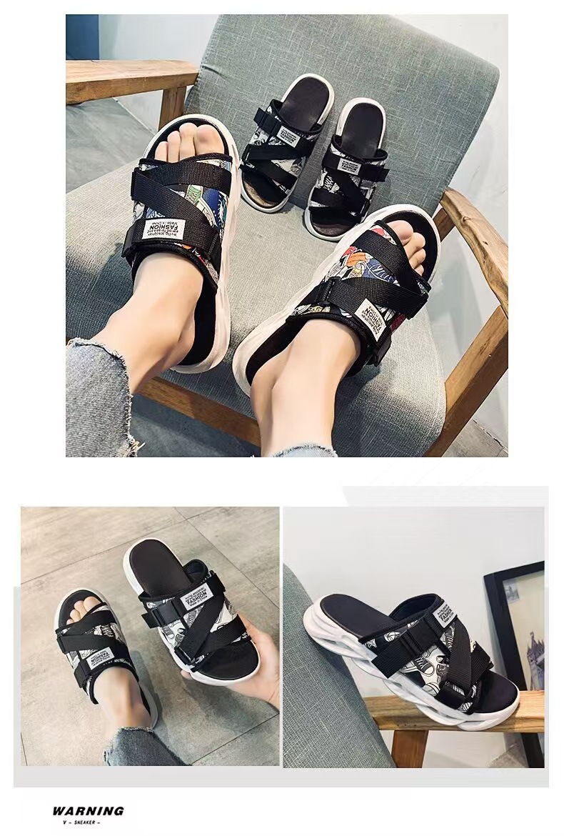 여름 새로운 쉐이크 빠른 인터넷 인기있는 커플 소프트 하단 벨크로 트렌디 한 학생 비치 샌들 및 슬리퍼 미끄럼 방지 야외 헤어스토어 가기