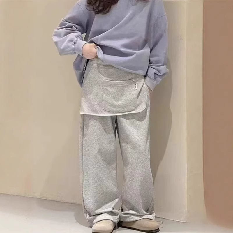 소녀 스포츠 바지 봄과 가을 2025 새로운 어린이 봄 캐주얼 스트레이트 바지 소녀 이동식 방귀 커튼 스웨트 팬츠