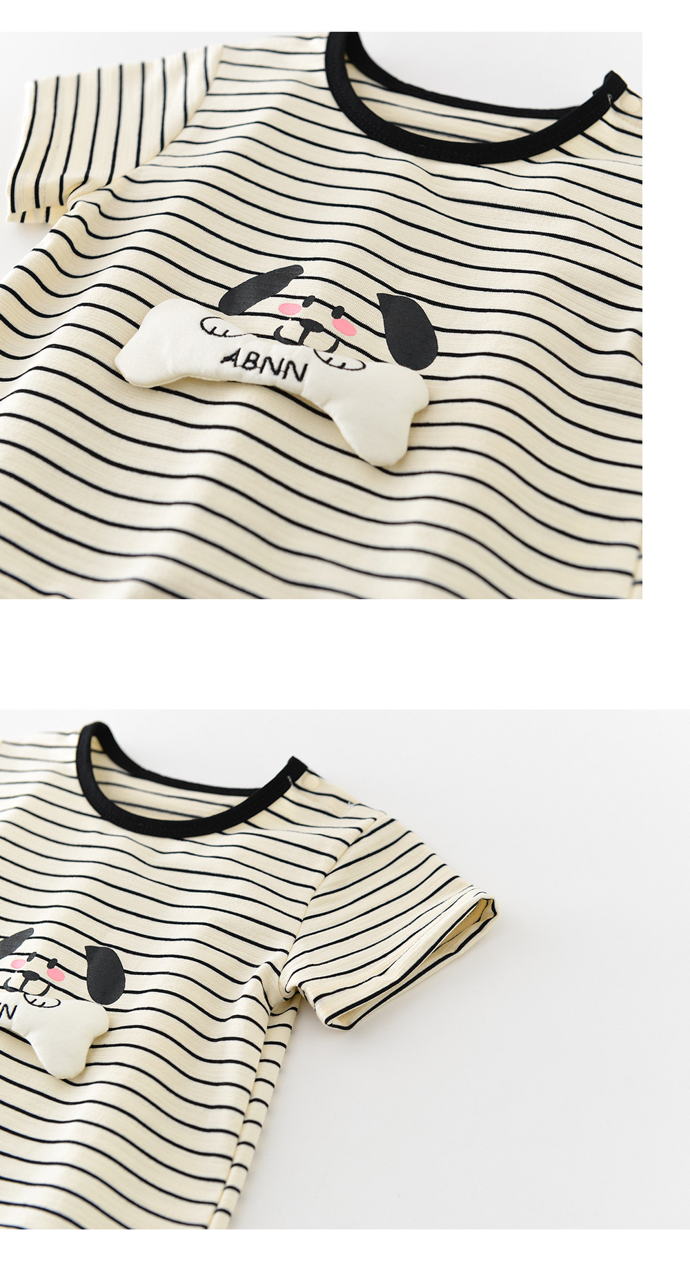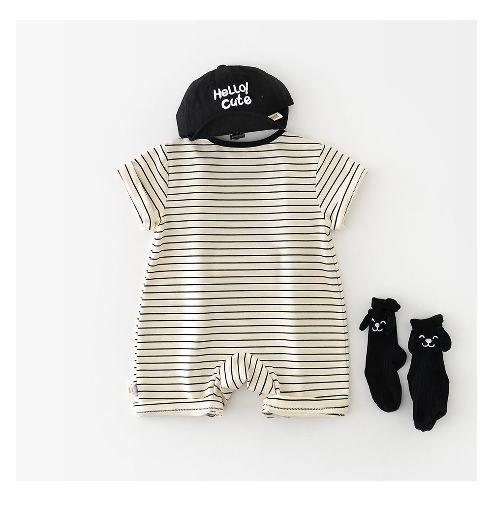 아기 여름 반팔 점프 수트 신생아 만화 강아지 인형 흑백 줄무늬 강아지 등반 세트 52019