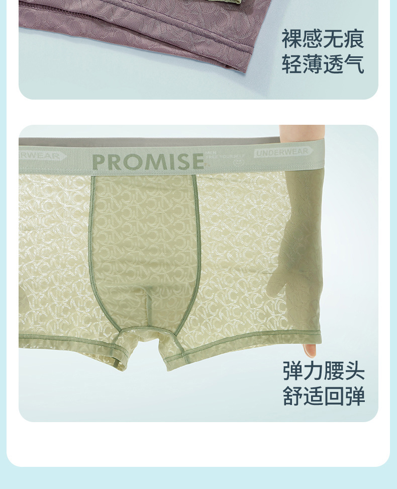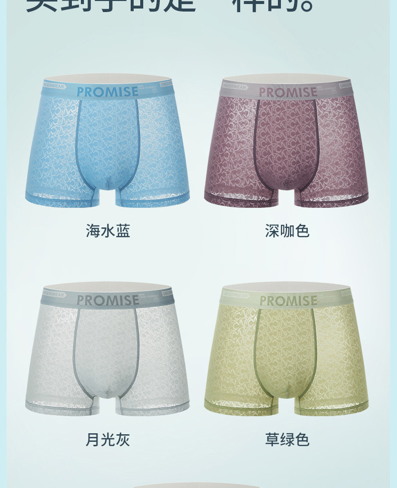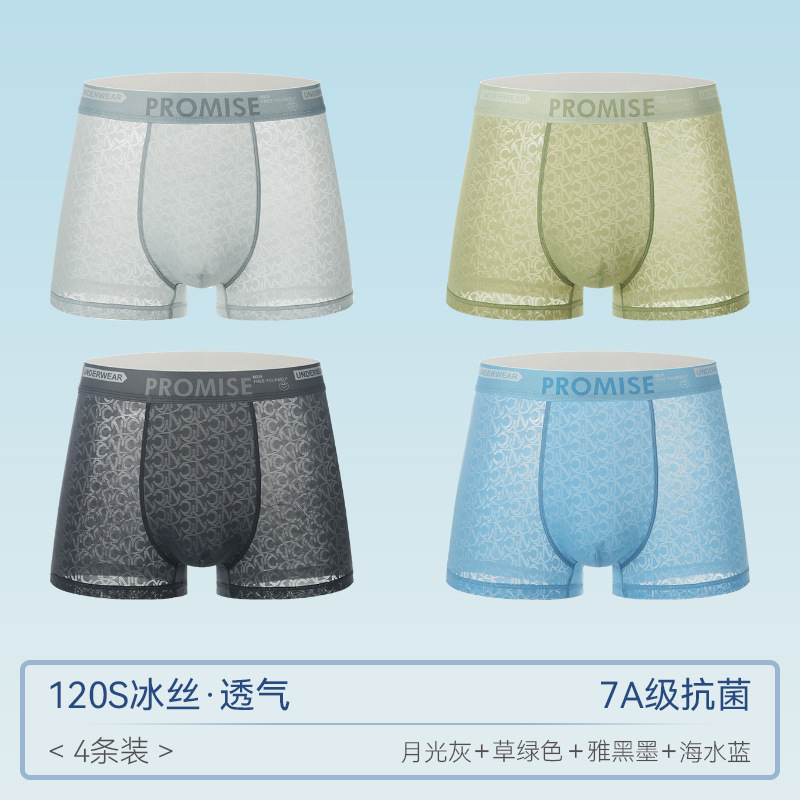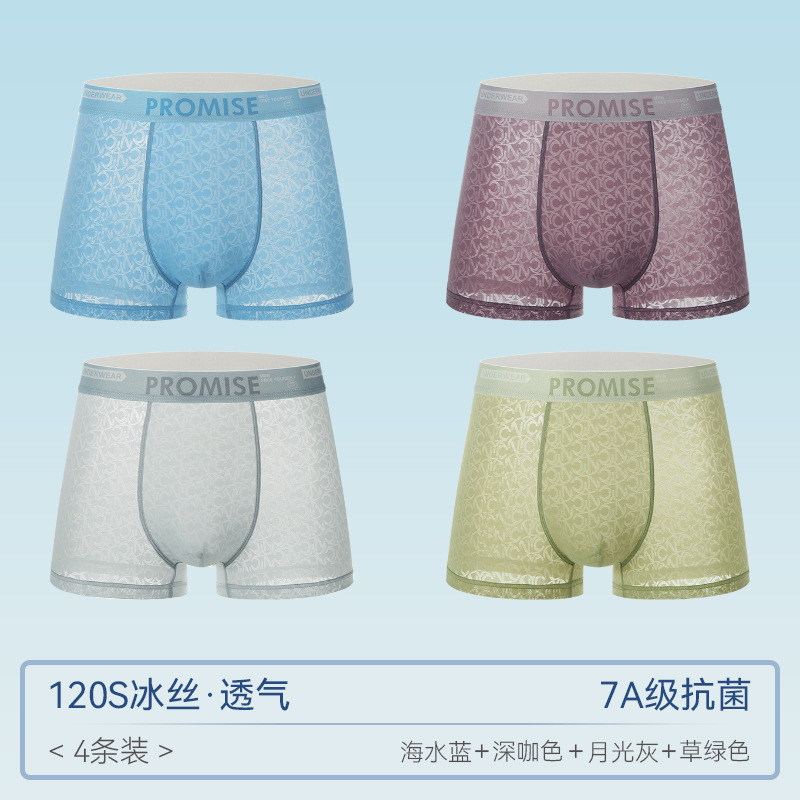 남자 속옷 아이스 실크 원활한 메쉬 복서 반바지 헤드 2024 새로운 4 코너 남자 여름 얇은